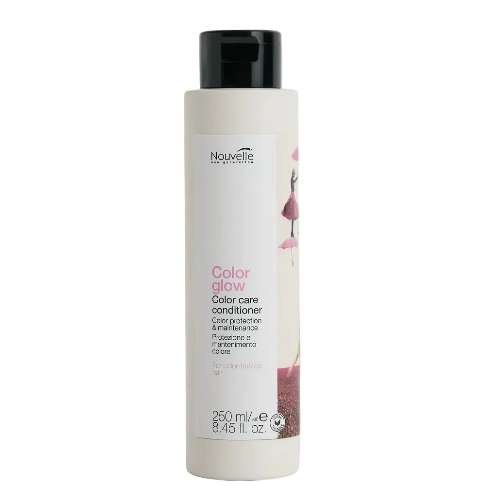 Color Care Conditioner - кондиціонер, що дбає про фарбоване волосся, робить його м’яким, слухняним та сяючим, при цьому не обтяжує його. Він допомагає захистити колір від швидкого потьмяніння та зберегти його насиченість. Особливості продукту: Кондиціонер для збереження кольору фарбованого волосся, 250 мл Color care conditioner COLOR GLOW Nouvelle Активні компоненти: Кондиціонер для збереження кольору фарбованого волосся, 250 мл Color care conditioner COLOR GLOW Nouvelle Застосування: Кондиціонер для збереження кольору фарбованого волосся, 250 мл Color care conditioner COLOR GLOW Nouvelle Нанесіть на чисте, вологе волосся після миття шампунем, залиште на 2–3 хвилини, потім ретельно змийте водою.Кондиціонер для збереження кольору фарбованого волосся Color care conditioner COLOR GLOW Nouvelle