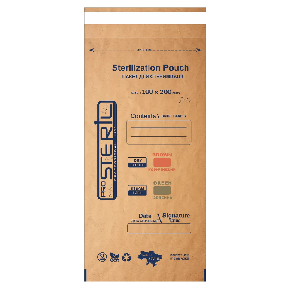 Крафтові пакети від виробника ProSteril у новому оформленні відрізняються міцністю та довгим збереженням стерильності. Особливості паперових пакетів ProSteril Застосування пакетів ProSteril:Крафт-пакет для стерилізації інструментів