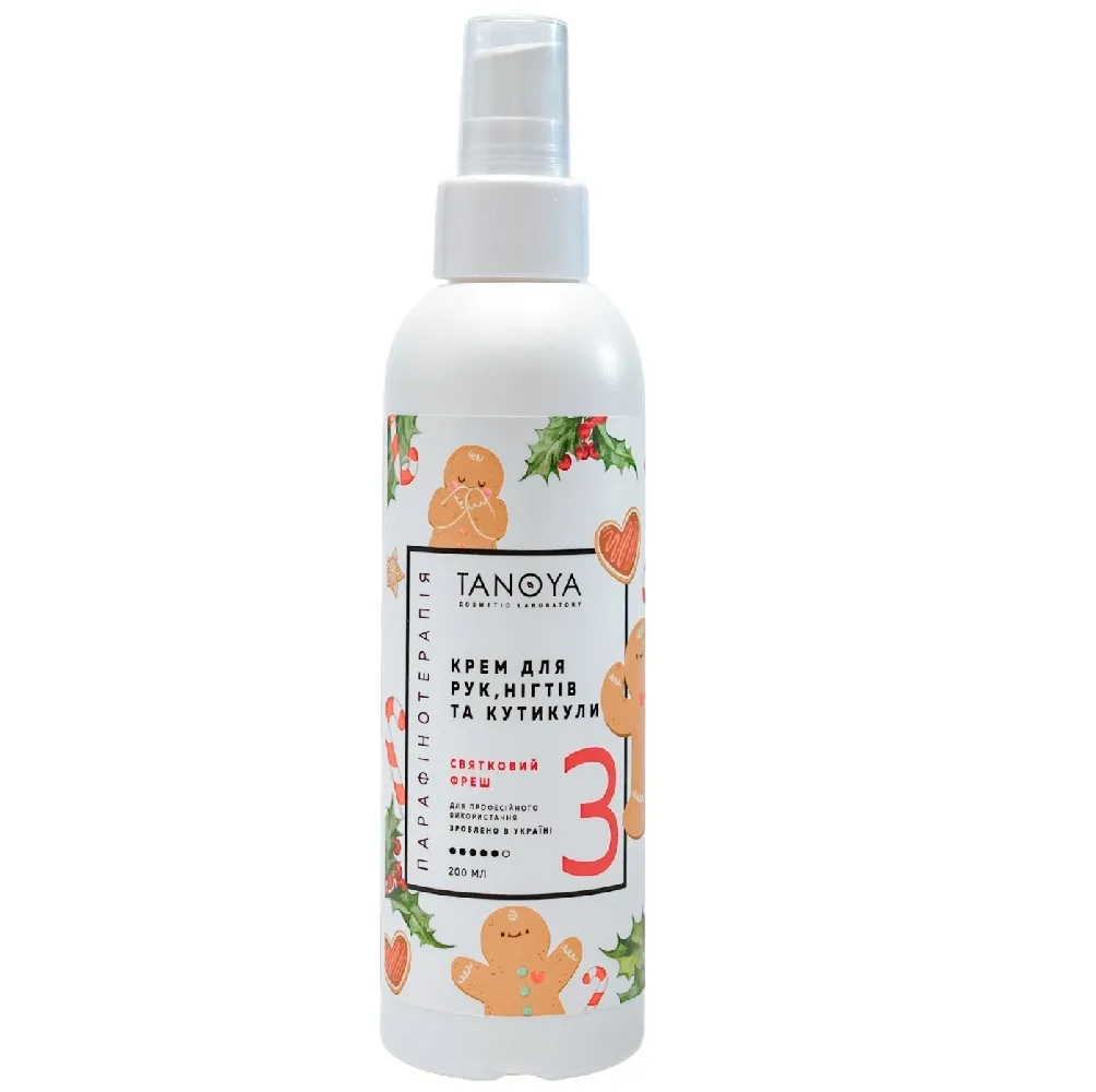 ЕТАП Парафінотерапії: Догляд після процедури та на кожен день. ДІЯ ТА АКТИВНІ КОМПОНЕНТИ ЗАГАЛЬНА ІНФОРМАЦІЯ Унікальна формула, що збагачена природними олiями, забезпечує надійний догляд за шкірою рук та кутикулою, сприяє ЗАСТОСУВАННЯ Легкими масажними рухами нанести невелику кількість крему. ПОРАДА КОСМЕТОЛОГА Цей крем можна використовувати як самостійне доповнення до процедури манікюру, педикюру та щоденного догляду ПРОТИПОКАЗАННЯ Немає.Крем для рук, нігтів та кутикули Лімітований випуск в ароматі «Імбирне печиво» TANOYA Парафінотерапія
