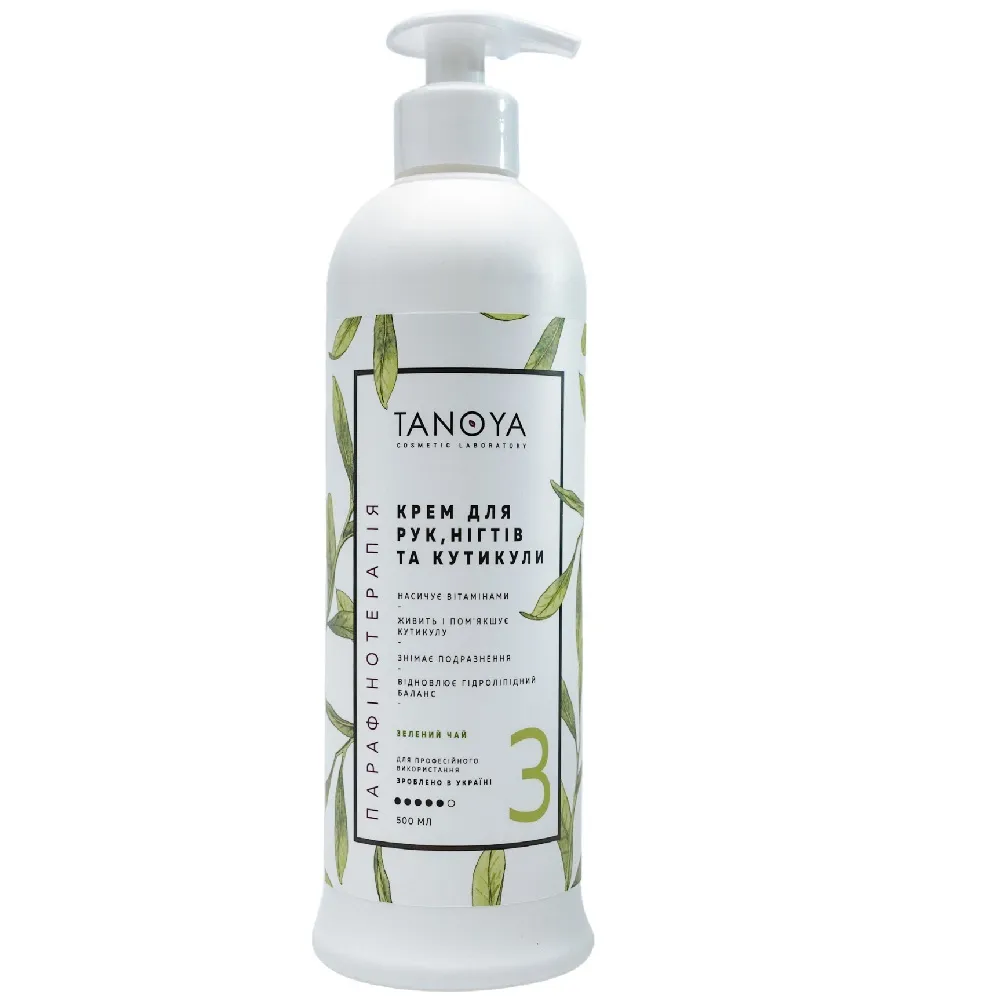 ЕТАП Парафінотерапії: Догляд після процедури та на кожен день. ДІЯ ТА АКТИВНІ КОМПОНЕНТИ ЗАГАЛЬНА ІНФОРМАЦІЯ Унікальна формула, що збагачена природними олiями, забезпечує надійний догляд за шкірою рук та кутикулою, сприяє ЗАСТОСУВАННЯ Легкими масажними рухами нанести невелику кількість крему. ПОРАДА КОСМЕТОЛОГА Цей крем можна використовувати як самостійне доповнення до процедури манікюру, педикюру та щоденного догляду ПРОТИПОКАЗАННЯ Немає.Крем для рук, нігтів та кутикули TANOYA Парафінотерапія