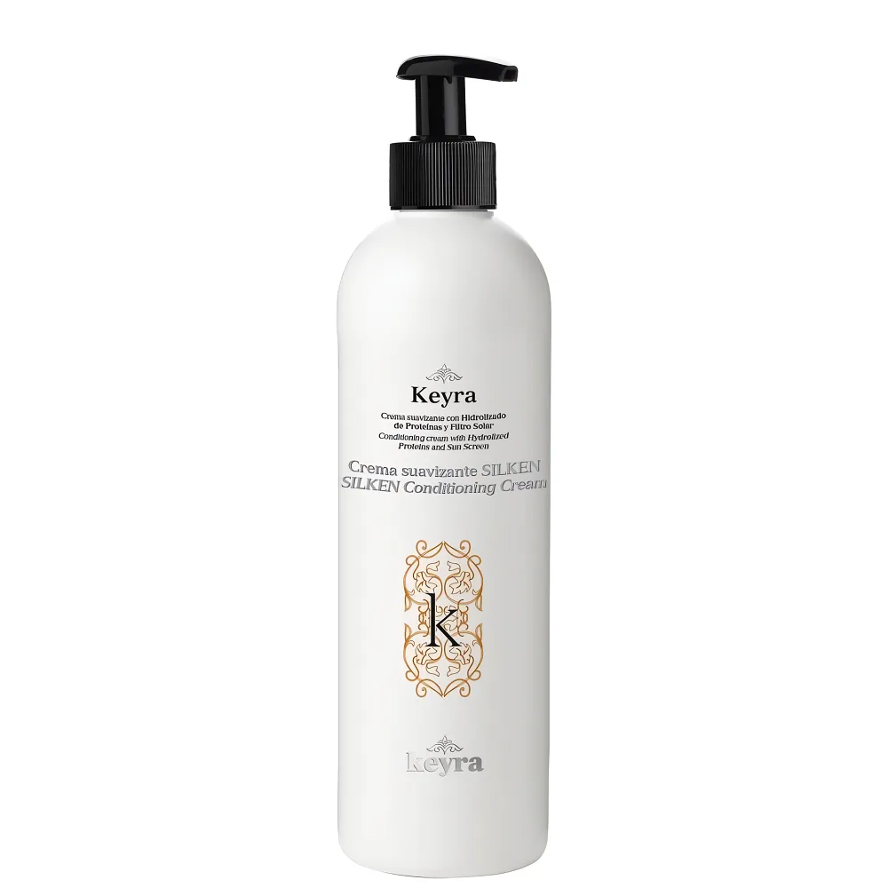 Розгладжувальний крем SILKEN Conditioning Cream розроблений для зволоження та кондиціонування волосся. Також полегшує розчісування, підтримує колір та захищає волосся від впливу сонця. Особливості продукту: Крем-кондиціонер розгладжувальний з протеїнами та УФ-фільтром, 500 мл SILKEN Conditioning Cream Keyra Застосування: Крем-кондиціонер розгладжувальний з протеїнами та УФ-фільтром, 500 мл SILKEN Conditioning Cream Keyra На вологе волосся після використання шампуня нанесіть щедру порцію пом`якшувального крему та помасажуйте, залиште діяти на три хвилини, змийте волосся великою кількістю води.Крем-кондиціонер розгладжувальний з протеїнами та УФ-фільтром, 500 мл SILKEN Conditioning Cream Keyra