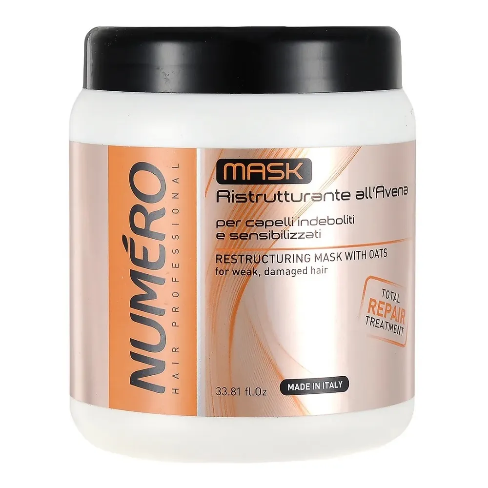 Маска Restructuring Mask with Oats Avena Numero надає інтенсивну живильну і відновлювальну дію на структуру волосся. Екстракт вівса, який входить до складу маски, глибоко живить волосся, робить його більш еластичним і пружним. Засіб має густу, щільну консистенцію ніжно-жовтого кольору, відрізняється приголомшливим ароматом з ванільними та лимонними нотками. Маска не обтяжує волосся, надає йому обсягу і блиску. Після першого використання волосся виглядає більш здоровим, блискучим і м`яким, повертається еластичність та легкість розчісування. Особливості продукту: Крем-маска для відновлення волосся з витяжкою вівса, 1000 мл Restructuring Mask with Oats Avena Numero BRELIL Professional Активні компоненти: Крем-маска для відновлення волосся з витяжкою вівса, 1000 мл Restructuring Mask with Oats Avena Numero BRELIL Professional Застосування: Крем-маска для відновлення волосся з витяжкою вівса, 1000 мл Restructuring Mask with Oats Avena Numero BRELIL Professional Нанести маску на вимите відновлювальним шампунем Restructuring Shampoo with Oats Avena Numero волосся, ретельно розподілити по всій довжині, приділивши особливу увагу найбільш проблемним ділянкам. Помасажувати пошкоджені ділянки, залишити маску на волоссі діяти кілька хвилин, після чого змити теплою водою.Крем-маска для відновлення волосся з витяжкою вівса Restructuring Mask with Oats Avena Numero BRELIL Professional