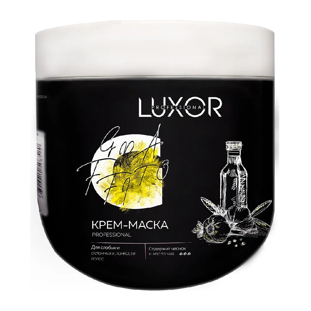 Крем-маска Cream Mask призначена для повноцінного догляду за слабким і схильним до ламкості волоссям. Унікальна формула на основі високої концентрації активних інгредієнтів зміцнює структуру волосся, зменшує ламкість, надає блиску і сили без обтяження, робить волосся шовковистим. Екстракт часнику, що містить велику кількість аліцину, покращує харчування коріння та стимулює ріст волосся. Олія чіа відновлює структуру волосся, зволожує, надає блиску. Крем-маска має приємний свіжий аромат. Особливості продукту: Активні компоненти: екстракт часнику, олія чіа. Застосування: нанесіть маску на чисте вологе волосся, залиште на 3-5 хвилин і промийте.Крем-маска зміцнювальна для слабкого і ламкого волосся з часником і маслом чіа Cream Mask Sulfate & Paraben Free LUXOR Professional