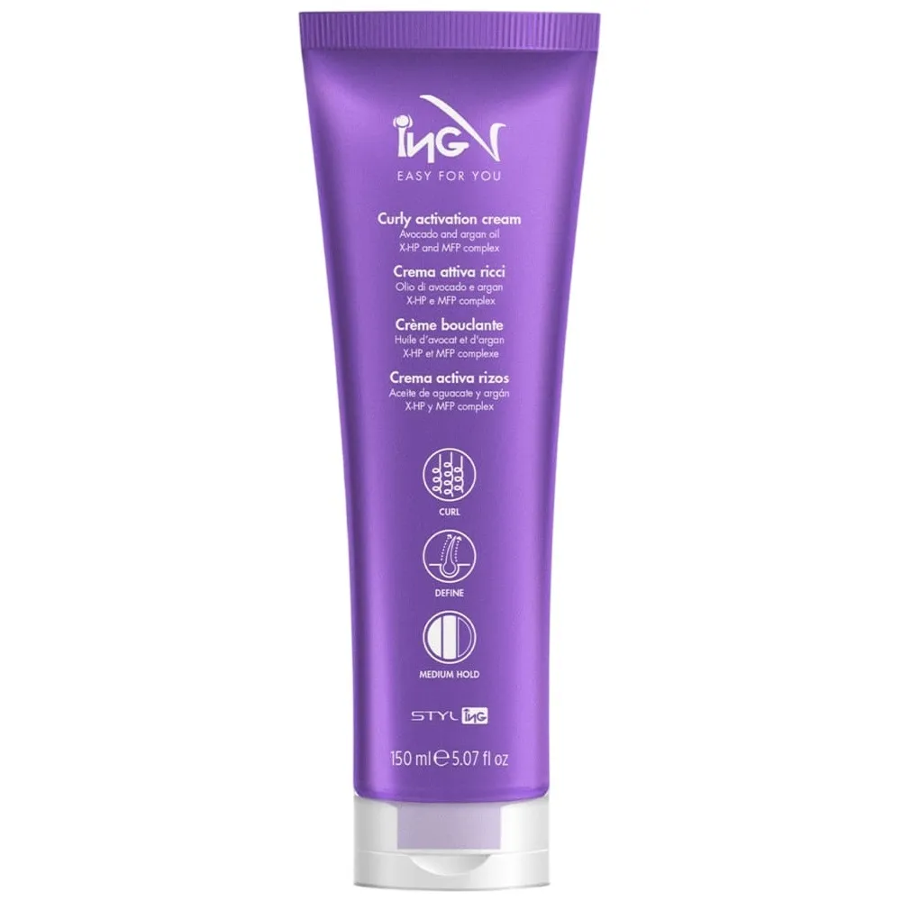 Curly Activation Cream від STYLing ING Professional спеціально розроблений для догляду та стайлінгу кучерявого й хвилястого волосся. Засіб активує природну форму локонів, робить їх більш чіткими, еластичними та доглянутими без обтяження. Крем допомагає приборкати пухнастість, зберігає природну рухливість завитків і надає волоссю здоровий блиск. Підходить для щоденного використання та професійного застосування в салоні. Ідеальний продукт для укладання з дифузором. Особливості продукту: Крем стайлінговий для курчавого волосся, 150 мл Curly activation cream STYLing ING Professional Активні компоненти: Крем стайлінговий для курчавого волосся, 150 мл Curly activation cream STYLing ING Professional Застосування: Крем стайлінговий для курчавого волосся, 150 мл Curly activation cream STYLing ING Professional Нанесіть на вологе волосся по всій довжині та кінчикам, розчешіть для рівномірного розподілу. Потім зімніть: руками зберіть волосся від кінчиків до коренів і з’єднайте складками. Продовжуйте укладання за допомогою дифузора.Крем стайлінговий для курчавого волосся Curly activation cream STYLing ING Professional