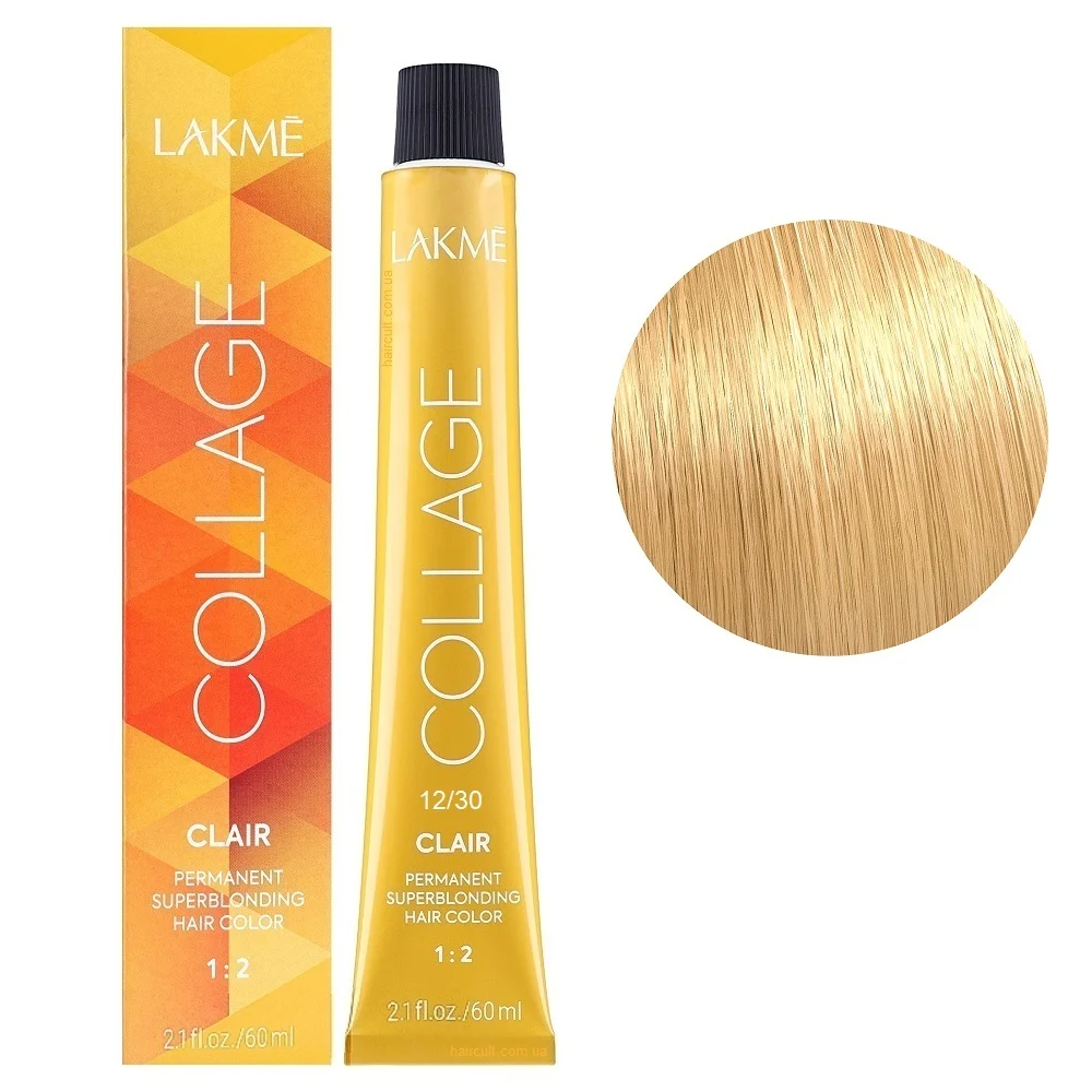 Clair Permanent Superblonding Hair Color COLLAGE LAKME - це перманентна, високоефективна суперосвітлювальна крем-фарба, що дозволяє освітлити волосся на 4-5 тонів. Її формула заснована на технології Fiber Architect, яка захищає і відновлює волосся в процесі знебарвлення. Завдяки їй Ceramide ІІІ (комплекс рідких мікрокерамідів) пошарово проникає в волокно волосся, заповнює і відновлює пошкоджені ділянки. Фарба має приємну кремову консистенцію, легко змішується з окислювачем і рівномірно розподіляється по пасмах. Вона відмінно перекриває сивину, дарує локонам природний, насичений тон і водночас сприяє їхній гладкості та слухняності. Особливості продукту: 12/30 Суперосвітлюючий світло-білявий золотистий Крем-фарба для волосся стійка, 60 мл Permanent Hair Color COLLAGE LAКME Застосування: 12/30 Суперосвітлюючий світло-білявий золотистий Крем-фарба для волосся стійка, 60 мл Permanent Hair Color COLLAGE LAКME Тона Collage (ХХ/ОО) рекомендується використовувати для сивого волосся, що важко піддаються фарбуванню, та для якого необхідна більш висока інтенсивність пігментації. Для збереження яскравості кольору, блиску та м’якості волосся рекомендується використовувати засоби догляду серії Teknia Color Stay. Важливо! Продукт для професійного застосування. Уважно ознайомтесь з інструкцією.Суперосвітлювальна крем-фарба для волосся стійка Clair Permanent Superblonding Hair Color COLLAGE LAКME