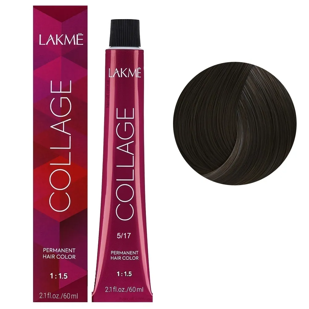 Permanent Hair Color COLLAGE LAKME - це перманентна, високоефективна крем-фарба, створена для стійкого фарбування волосся різних типів, включно з сивиною. Її формула заснована на технології OF5, яка підсилює ефективність пігментів, забезпечуючи насичений, рівномірний і стійкий колір, що довго утримується в структурі волосся. Продукт доглядає за волоссям під час фарбування, забезпечує м’якість і блиск, не пересушує волосся і не руйнує його структуру завдяки збалансованому складу. Фарба має приємну кремову консистенцію, легко змішується з окислювачем і рівномірно розподіляється по пасмах. Вона відмінно перекриває сивину, дарує локонам природний, насичений тон і водночас сприяє їхній гладкості та слухняності. Особливості продукту: 5/17 Світло-каштановий попелясто-синій Крем-фарба для волосся стійка, 60 мл Permanent Hair Color COLLAGE LAКME Застосування: 5/17 Світло-каштановий попелясто-синій Крем-фарба для волосся стійка, 60 мл Permanent Hair Color COLLAGE LAКME Тона Collage (ХХ/ОО) рекомендується використовувати для сивого волосся, що важко піддаються фарбуванню, та для якого необхідна більш висока інтенсивність пігментації. Для збереження яскравості кольору, блиску та м’якості волосся рекомендується використовувати засоби догляду серії Teknia Color Stay. Важливо! Продукт для професійного застосування. Уважно ознайомтесь з інструкцією.Крем-фарба для волосся стійка Permanent Hair Color COLLAGE LAКME