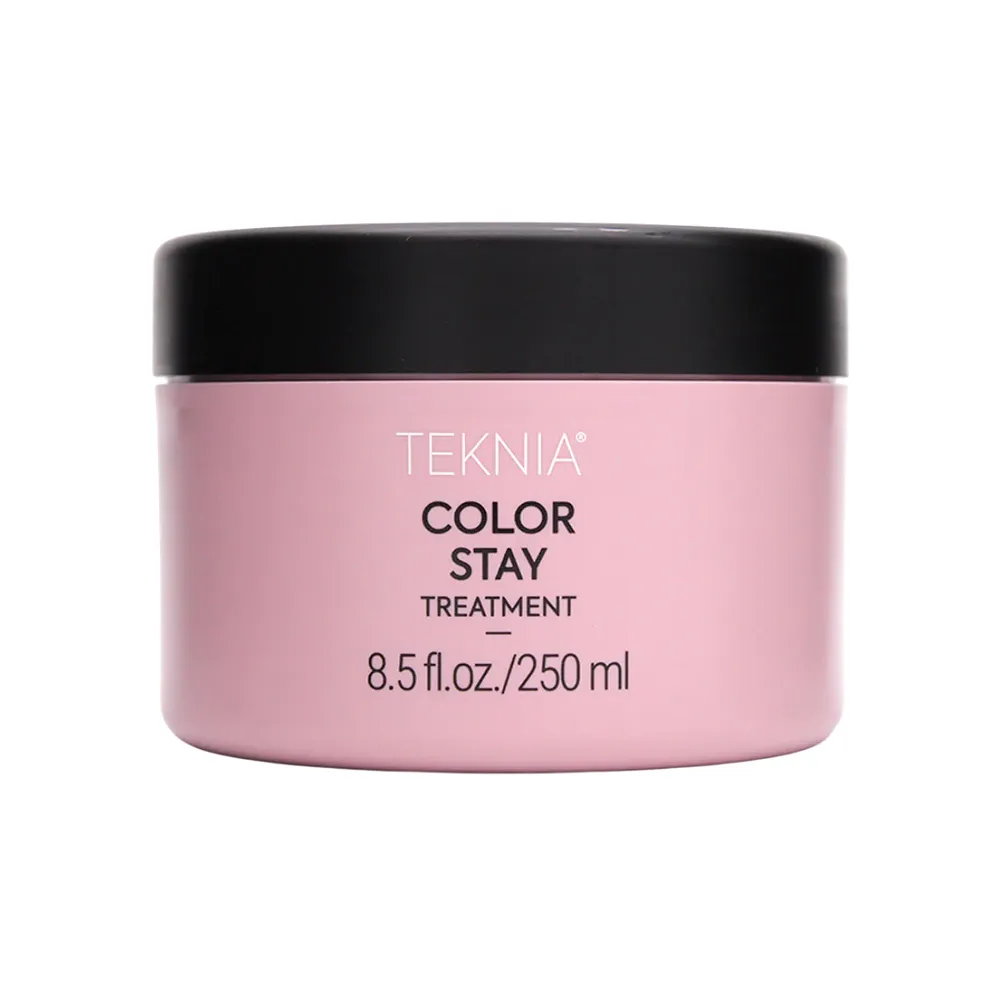 Маска Treatment COLOR STAY реструктурує пасма, пошкоджені в процесі освітлення або фарбування. Активні компоненти доглядають за волоссям зсередини: зволожують, відновлюють волокна волосся та зміцнюють кутикулу. Засіб забезпечує збереження кольору волосся і насиченість відтінку. Після застосування маски локони набувають красивого природного блиску, який зберігається надовго. Перевірка ефективності продукту показала результат - на 50% більше захисту кольору. Має яскравий аромат з ефірною олією шавлії. Особливості продукту: Активні компоненти: настій органічних асаї та екстракту насіння соняшнику, розумний силікон. Застосування: ретельно нанести на вимите та висушене рушником волосся, залишити на 5 хвилин, змити.Маска для збереження кольору фарбованого волосся Treatment COLOR STAY Hair Care TEKNIA LAKME