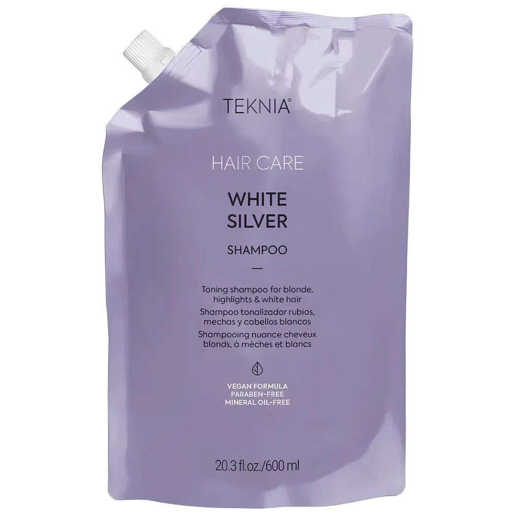 Тонувальний шампунь Shampoo WHITE SILVER для нейтралізації жовтих і теплих відтінків волосся. Професійно збалансована формула шампуню забезпечує делікатне очищення і сприяє нейтралізації жовтизни та небажаних теплих відтінків на сивому та світлому волоссі. Комплекс активних інгредієнтів та органічний екстракт білого лотоса в складі засобу сприяє збереженню чистоти холодних тонів. Засіб інтенсивно зволожує волосся, роблячи локони більш м`якими, еластичними і блискучими. Має освіжаючий аромат з ефірною олією лимона. Особливості продукту: Активні компоненти: лотос, катіонний полімер отриманий з рослин. Застосування: нанести невелику кількість засобу на вологе волосся і трохи спінити, через 1-3 хвилини змити теплою проточною водою.Шампунь тонувальний для нейтралізації жовтого відтінку на світлому, мелірованому та сивому волоссі Shampoo WHITE SILVER Hair Care TEKNIA LAKME