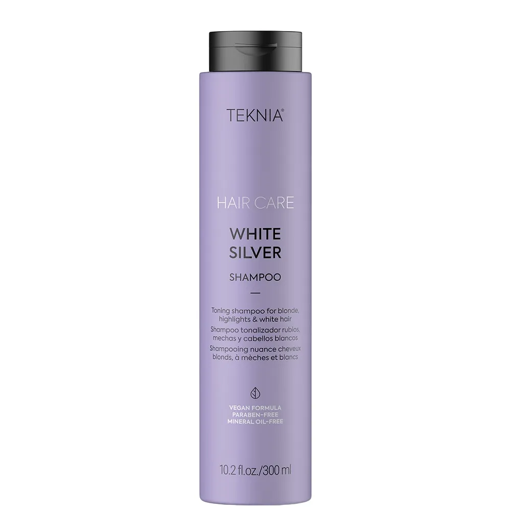 Шампунь тонувальний для нейтралізації жовтого відтінку на світлому, мелірованому та сивому волоссі, 300 мл 44012 Shampoo WHITE SILVER Hair Care TEKNIA LAKME