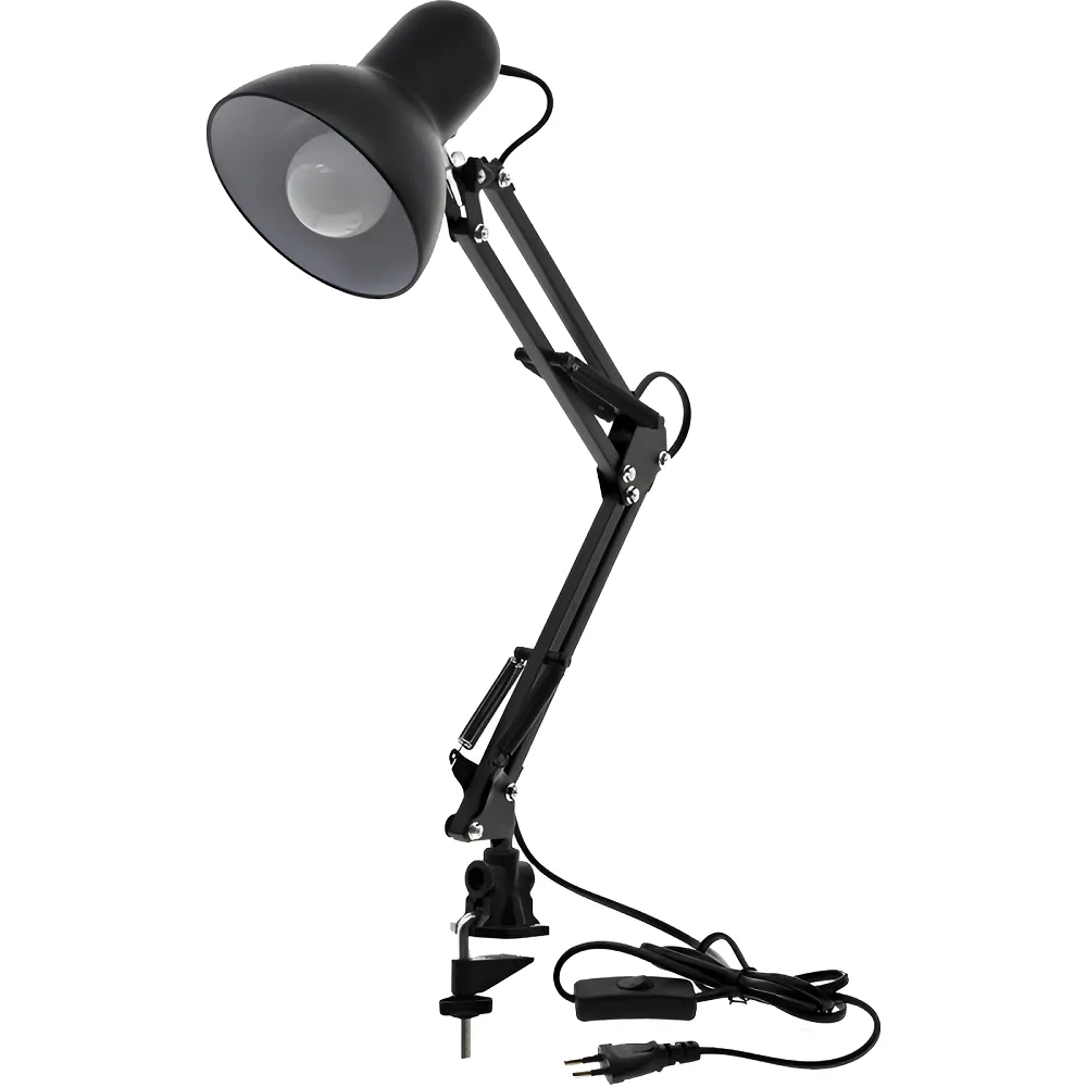 Чорна настільна лампа ідеально підійде як для роботи в салоні, так і для домашнього використання. Лампа фіксується на робочому столі за допомогою гвинтів. Система кріплення, якою оснащена лампа, дозволяє повертати лампу на 360 градусів ліворуч/праворуч. Має фіксуючий пристрій із пластику, також ви можете використовувати лампу на столах де вже є спеціальне місце для кріплення лампи. Настільна лампа рацює з лампочкою із цоколем E 27, максимальна потужність 60 Вт. Має знімний абажур діаметром 15,5 см, кабель живлення довжиною 150 см та вимикач. Особливості продукту: Лампа настільна з довгою рукояттю на затиску до столу (ЧОРНА) Desk Lamp Лампа настільна з довгою рукояттю на затиску до столу Desk Lamp