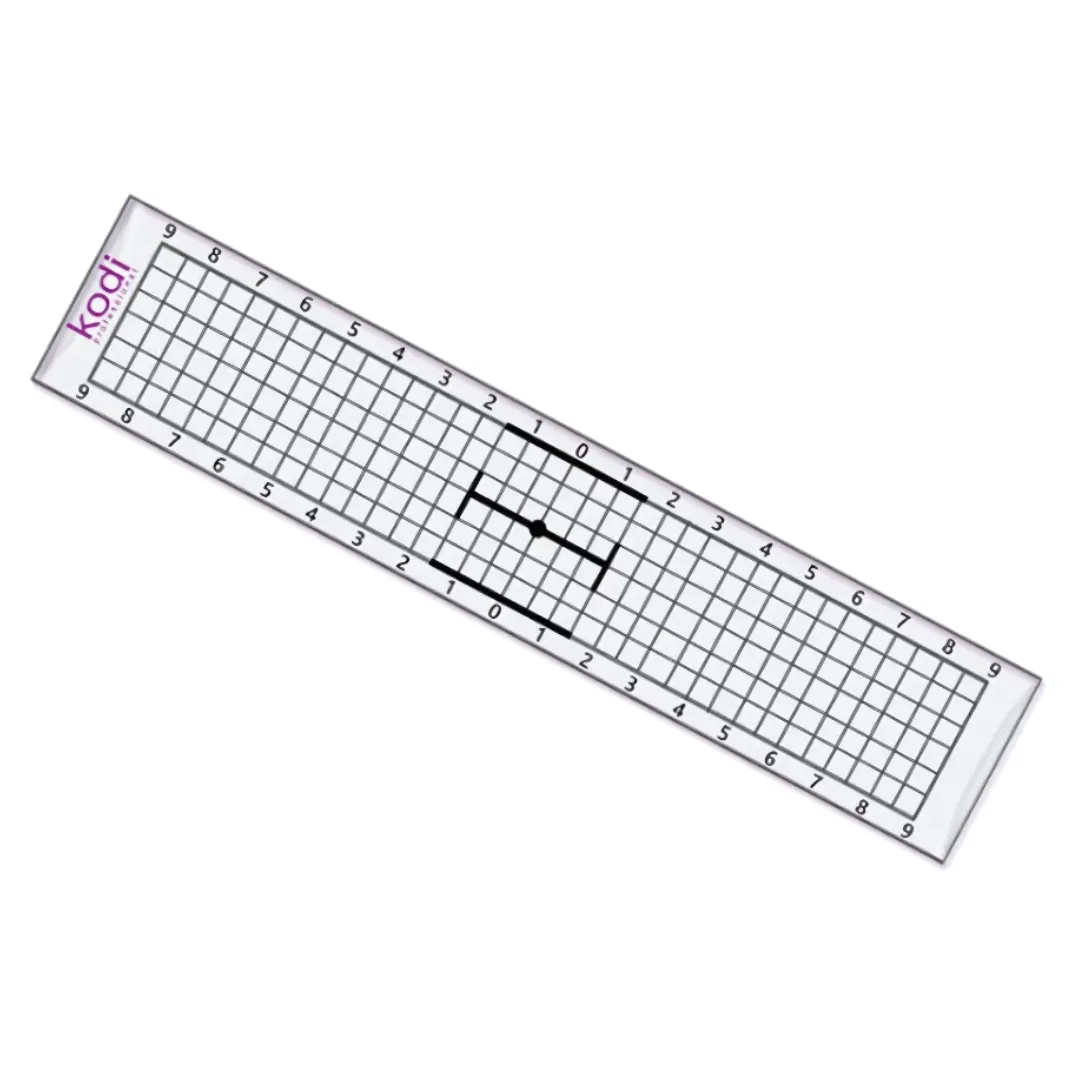 Щоб результат мікропігментаціі брів був якісним і виглядав бездоганно, необхідно врахувати безліч чинників. Одним з ключових моментів в створенні ескізу брів є коректний підбір форми, що найкращим чином підходить до обличчя. Для допомоги майстру перманентного макіяжу, експертами KODI PROFESSIONAL був розроблений спеціальний інструмент, що дозволяє без зусиль побудувати ескіз ідеальних брів, зберігаючи правильні пропорції і симетрію – прозорий трафарет-лінійка. Числова розмітка гнучкою лінійкою-трафаретом дозволить позначити краї і точки зламу брів, встановити гармонійну висоту щодо лінії очей. Аксесуар підійде професіоналам, а також незамінний в роботі майстрів-початківців.Трафарет-лінійка для брів