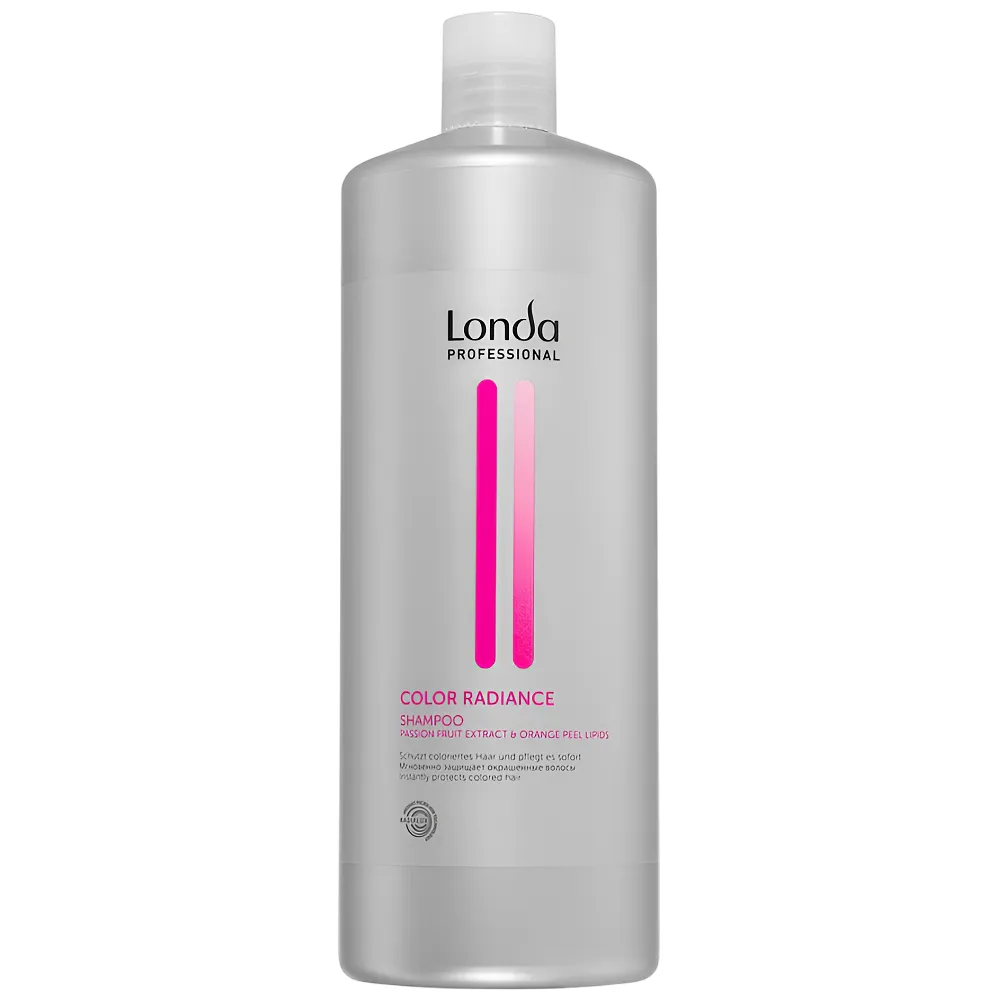 Шампунь для фарбованого волосся Shampoo COLOR RADIANCE сприяє захисту кольору, одночасно відновлює ослаблені хімічним впливом локони. Під впливом фарбувальних компонентів волосся стає тонким, ламкими і втрачає природний блиск. Професійний шампунь від Londa допомагає захистити локони, надає яскравість і сяйво. Засіб містить формулу зі спеціально відібраними інгредієнтами для фарбованого волосся з маракуйєю та ліпідами шкірки апельсину: Щоденне використання данного засобу забезпечує волоссю потужний захист і надає лікувальну дію. Особливості продукту: Шампунь для захисту кольору фарбованого волосся, 1000 мл Shampoo COLOR RADIANCE Londa Professional Застосування: Шампунь для захисту кольору фарбованого волосся, 1000 мл Shampoo COLOR RADIANCE Londa Professional Нанести на вологе волосся масажними рухами, через 1-2 хвилини змити водою.Шампунь для захисту кольору фарбованого волосся Shampoo COLOR RADIANCE Londa Professional