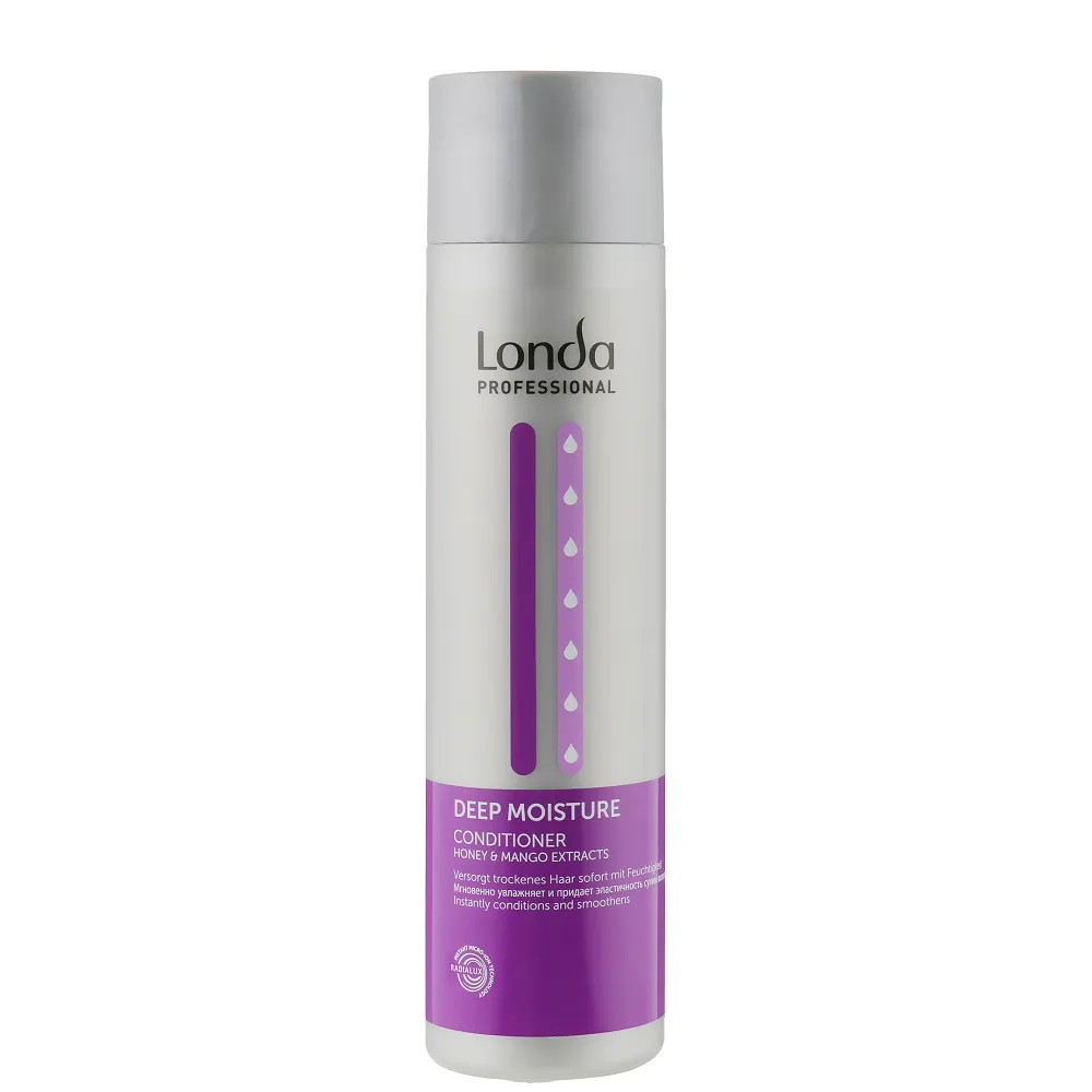 Кондиціонер Conditioner DEEP MOISTURE призначений для миттєвого зволоження сухого волосся. Надає м’якість, еластичність, легкість розчісування і блиск. Особливості продукту: Кондиціонер зволожувальний для сухого волосся, 250 мл Conditioner DEEP MOISTURE Londa Professional Застосування: Кондиціонер зволожувальний для сухого волосся, 250 мл Conditioner DEEP MOISTURE Londa Professional Нанести на вологе волосся масажними рухами, залишити на 1-3 хвилини для впливу, змити водою.Кондиціонер зволожувальний для сухого волосся Conditioner DEEP MOISTURE Londa Professional