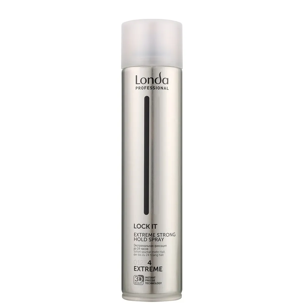 Лінія FINISH допоможе Вам зафіксуйте волосся до 24 годин, використовуючи різні фіксуючі спреї. LOCK IT - це професійний лак для закріплення волосся. Ідеально підходить для застосування на волоссі будь-якої довжини та типу, що робить його універсальним засобом завершення будь-якого укладання. Особливості продукту: Лак для волосся екстремальної фіксації (level 4), 300 мл Strong Hold Spray EXTREME (4) LOCK IT Londa Professional Застосування: Лак для волосся екстремальної фіксації (level 4), 300 мл Strong Hold Spray EXTREME (4) LOCK IT Londa Professional Добре збовтати, розпорошити на фінальний образ з відстані 30 см. Забезпечує від екстрасильної до екстремальної фіксації в залежності від нанесеної кількості лаку.Лак для волосся екстремальної фіксації (level 4) Strong Hold Spray EXTREME (4) LOCK IT Londa Professional