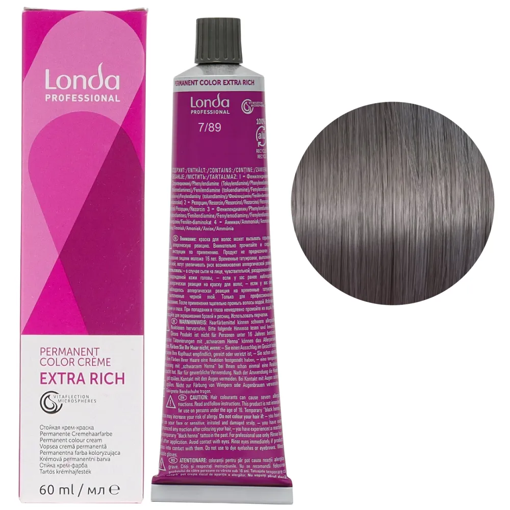 Стійка крем-фарба з мікросферами Vitaflection, які відбивають світло, для стійкого, насиченого життєвою енергією кольору і виняткового блиску волосся. Забезпечує тривалий результат – завдяки спеціальній технології фарба глибоко проникає у структуру волосся, забезпечує інтенсивний колір до 8 тижнів. Має широку палітру понад 100 відтінків для будь-якого типу та кольору волосся. Особливості продукту: 7/89 середній блондин перлинне сандре Стійка фарба для волосся, 60 мл Permanent Color Londa Professional Фарба має престижну систему ароматів з високоякісним маскуванням аміаку, що робить фарбування більш приємним досвідом для вашого клієнта. Застосування: 7/89 середній блондин перлинне сандре Стійка фарба для волосся, 60 мл Permanent Color Londa Professional Змішати фарбу Permanent Color з окислювачем Permanent Hair Colour Developer Londacolor 3%, 6%, 9% або 12%. Пропорції змішування: Час витримки залежить від бажаного результату. Важливо! Продукт для професійного застосування. Уважно ознайомтесь з інструкцією.Стійка фарба для волосся Permanent Color Londa Professional