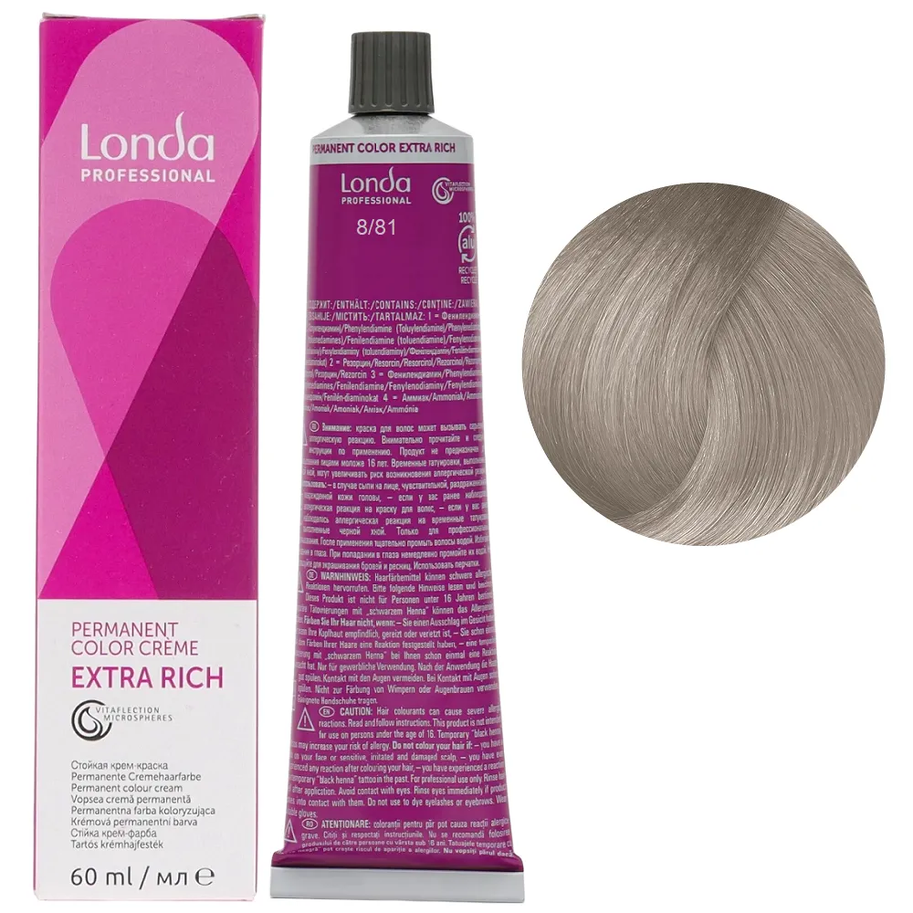 Стійка крем-фарба з мікросферами Vitaflection, які відбивають світло, для стійкого, насиченого життєвою енергією кольору і виняткового блиску волосся. Забезпечує тривалий результат – завдяки спеціальній технології фарба глибоко проникає у структуру волосся, забезпечує інтенсивний колір до 8 тижнів. Має широку палітру понад 100 відтінків для будь-якого типу та кольору волосся. Особливості продукту: 8/81 світлий блондин перлинно-попелястий Стійка фарба для волосся, 60 мл Permanent Color Londa Professional Фарба має престижну систему ароматів з високоякісним маскуванням аміаку, що робить фарбування більш приємним досвідом для вашого клієнта. Застосування: 8/81 світлий блондин перлинно-попелястий Стійка фарба для волосся, 60 мл Permanent Color Londa Professional Змішати фарбу Permanent Color з окислювачем Permanent Hair Colour Developer Londacolor 3%, 6%, 9% або 12%. Пропорції змішування: Час витримки залежить від бажаного результату. Важливо! Продукт для професійного застосування. Уважно ознайомтесь з інструкцією.Стійка фарба для волосся Permanent Color Londa Professional