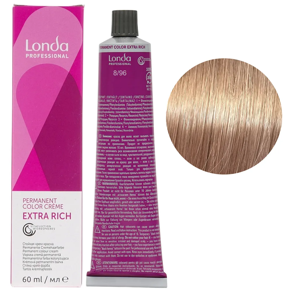 Особливості продукту: 8/96 світлий блондин сандре фіолетовий Стійка фарба для волосся, 60 мл Permanent Color Londa Professional