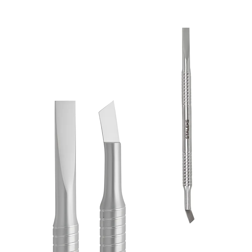 Лопатка належить до серії BEAUTY and CARE, розробленої для домашнього застосування. Інструмент поєднує функціональні зони: робоча частина "пушер прямий" призначена для підняття та відсування кутикули. Робоча частина "лопать" із нахилом легко очищає нігтьову пластину від наростів шкіри в зонах синусів. Якісне ручне двостороннє заточування сприяє тому, що інструмент легко справляється зі щільною шкіркою, не пошкоджуючи структуру нігтя. Пушер виконаний з цільного металевого полотна, без ризику розхитування деталей і поломки кріплень. Особливості продукту: Лопатка манікюрна BEAUTY & CARE 40 TYPE 1 STALEKS Лопатка манікюрна BEAUTY & CARE 40 TYPE 1 STALEKS