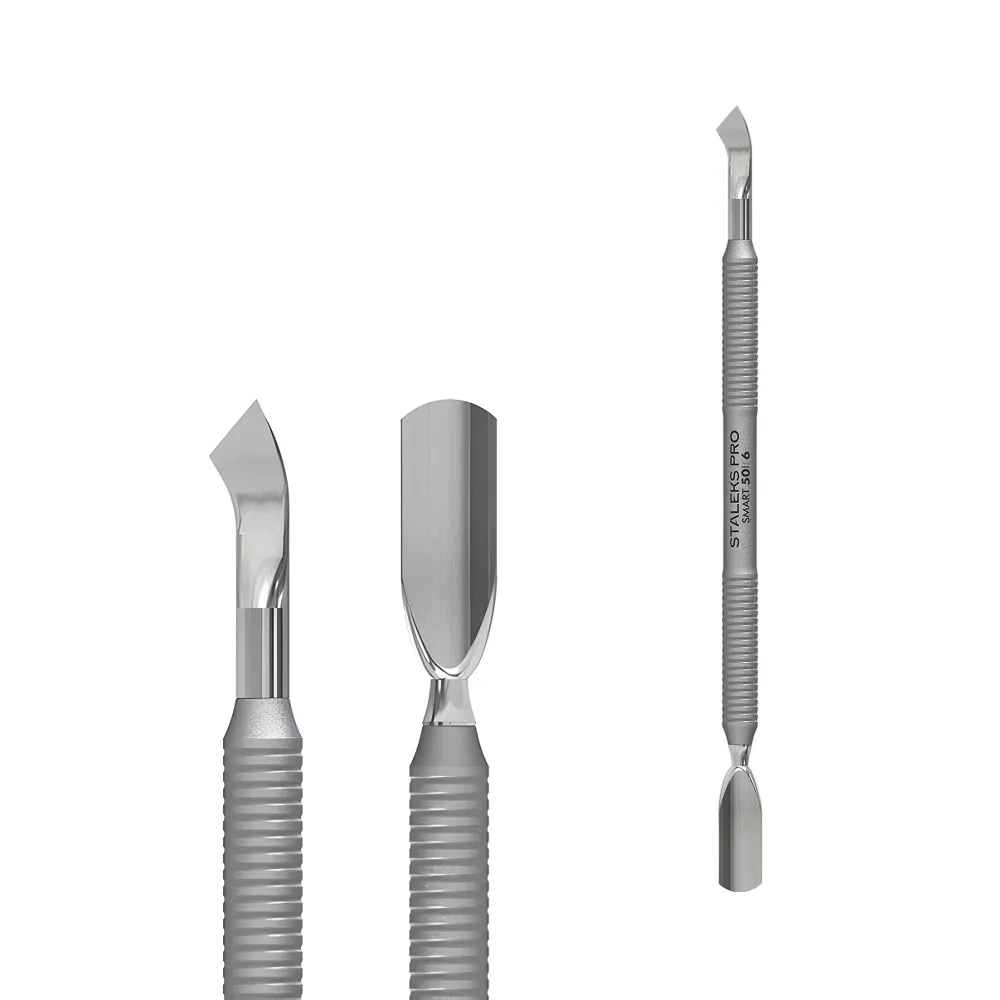 Лопатка SMART 50 TYPE 6 поєднує дві робочі зони: Продуманий нахил лопаті підвищує зручність роботи, знижуючи навантаження на кисть руки майстра. Ручне професійне заточування гарантує точність обробки без пошкодження нігтьової пластини. Інструмент належить до професійної серії SMART, тому підходить для всіх видів стерилізації та дезінфекції, які необхідні в салонних умовах. Особливості продукту: Лопатка манікюрна SMART 50 TYPE 6 STALEKS PROЛопатка манікюрна SMART 50 TYPE 6 STALEKS PRO