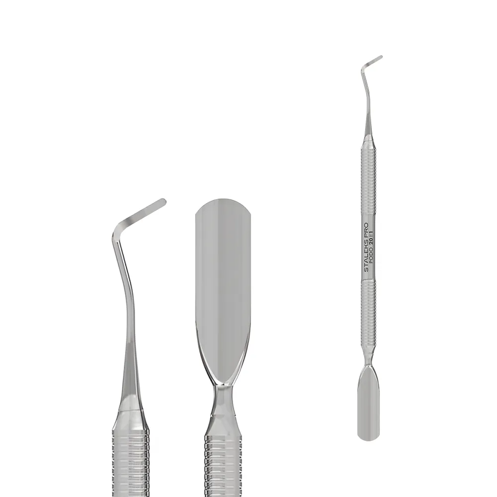 Двостороння кюретка для врослого нігтя PODO 20 TYPE 1 - затребуваний інструмент серед подологів та майстрів нігтьового сервісу. Розроблений для безпечної та ефективної корекції врослих нігтів, щоб запобігти розвитку оніхокриптозу. Завдяки анатомічно продуманому вигину робочої частини кюретка повторює форму нігтьової пластини, що полегшує обробку важкодоступних ділянок. PP-20/1 - застосовується для часткового видалення сухих мозолів та роботи з врослими нігтями після попереднього розм`якшення спеціальними засобами. Друга робоча частина лопатки PP-20/1 (заокруглений пушер) використовується для очищення нігтьової пластини від налиплого птеригію та кутикули. Рифлена робоча поверхня ручки комфортна для надійного хвату, запобігає ковзанню інструменту в руці під час процедури. Особливості продукту: Лопатка подологічна PODO 20 TYPE 1 STALEKS PROЛопатка подологічна PODO 20 TYPE 1 STALEKS PRO