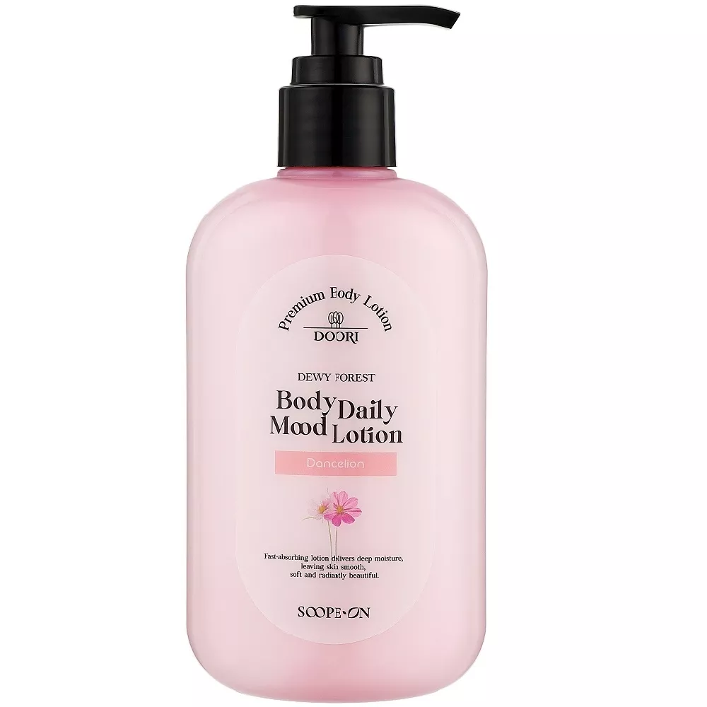 Екстракти цілющих трав центели азійської та хаутюнії серцеподібної, заспокоюють шкіру, пом`якшують та зволожують її. Квіткові ноти фіалки та мімози надають приємного аромату та вишуканого шлейфу на шкірі.Лосьйон для тіла з маслом жожоба та гіалуроновою кислотою для глибокого зволоження шкіри Body Daily Mood Lotion Dandelion Dewy Forest DOORI