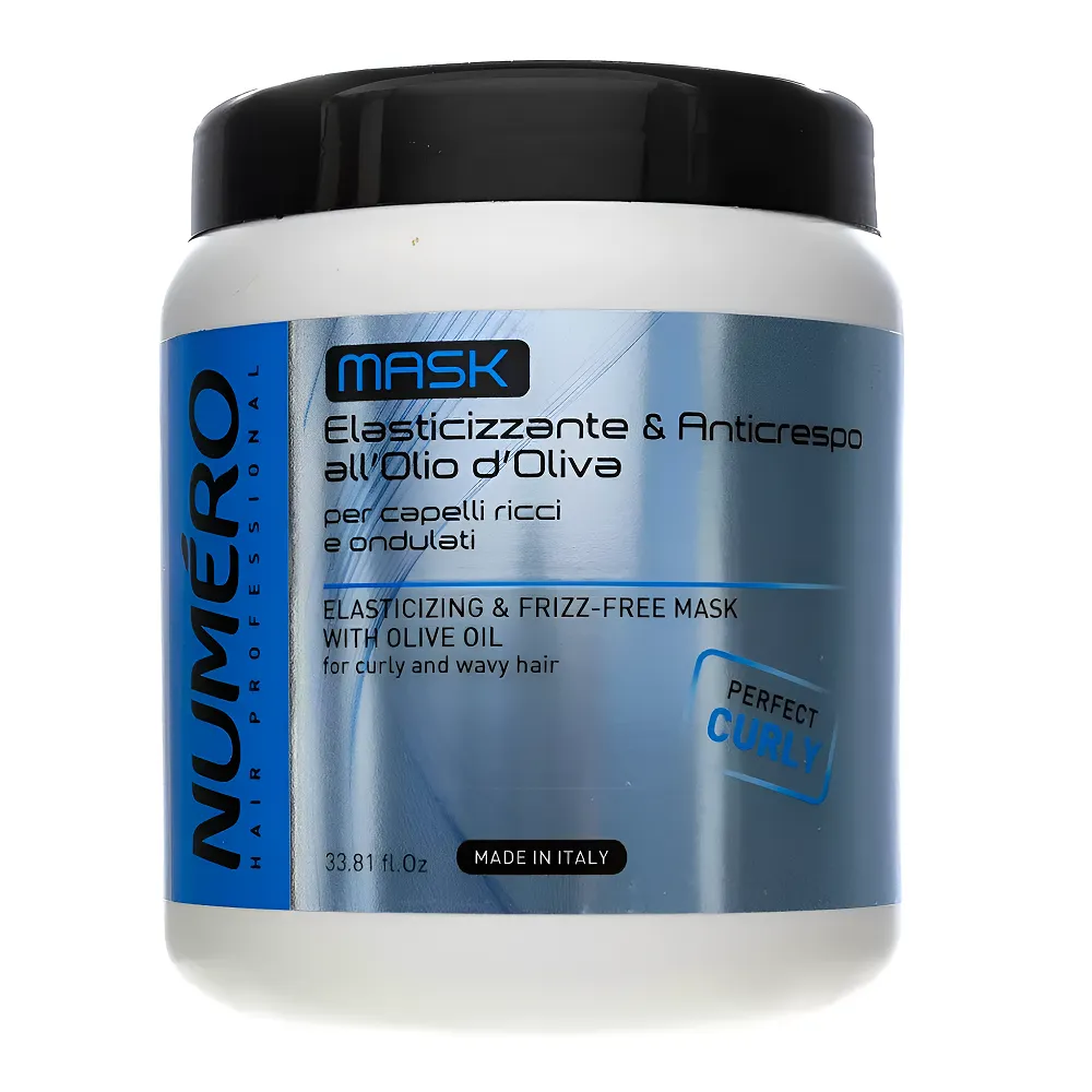 Маска Numero Curly на основі оливкового масла ефективно зволожує волосся, полегшує розчісування, надає волоссю м`якість, усуває ефект кучерявості. Сприяє створенню структурованих і пружних локонів, а також запобігає пухнастості волосся. Особливості продукту: Маска для кучерявого волосся з оливковою олією, 1000 мл Elasticizing & Frizz-Free Mask with Olive oil Curly Numero BRELIL Professional Активні компоненти: Маска для кучерявого волосся з оливковою олією, 1000 мл Elasticizing & Frizz-Free Mask with Olive oil Curly Numero BRELIL Professional Застосування: Маска для кучерявого волосся з оливковою олією, 1000 мл Elasticizing & Frizz-Free Mask with Olive oil Curly Numero BRELIL Professional Масажними рухами нанести невелику кількість маски на вимите шампунем волосся по всій довжині, приділіть увагу найбільш ушкодженим місцям. Залишити маску на волоссі на кілька хвилин, після чого ретельно змити водою.Маска для кучерявого волосся з оливковою олією Elasticizing & Frizz-Free Mask with Olive oil Curly Numero BRELIL Professional