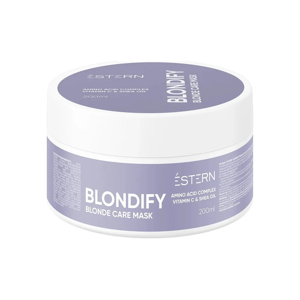 Професійний засіб Blonde Care Mask BLONDIFY для глибокого догляду за блондом. Формула маски розроблена для відновлення структури освітленого волосся, зменшення сухості та ламкості, повернення блиску і пружності. Маска живить і зволожує, зміцнює волокна, усуває пористість. Особливості продукту: Маска для відновлення та живлення світлого волосся, 200 мл Blonde Care Mask BLONDIFY ESTERN jNOWA Professional Активні компоненти: Маска для відновлення та живлення світлого волосся, 200 мл Blonde Care Mask BLONDIFY ESTERN jNOWA Professional Застосування: Маска для відновлення та живлення світлого волосся, 200 мл Blonde Care Mask BLONDIFY ESTERN jNOWA Professional Рівномірно нанести маску на чисте вологе волосся, відступаючи від коренів, залишити на 10–15 хвилин, потім ретельно змити водою. Використовувати 1–2 рази на тиждень або за потреби.Маска для відновлення та живлення світлого волосся Blonde Care Mask BLONDIFY ESTERN jNOWA Professional