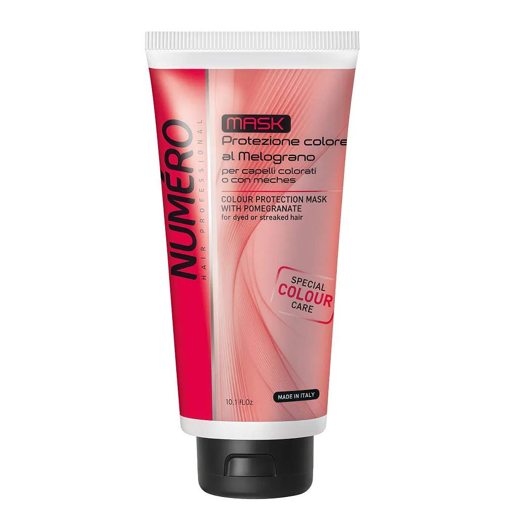 Маска Colour Numero з екстрактом граната, вітаміном С, вітаміни групи В, високим вмістом антиоксидантних поліфенолів призначений для використання на фарбованому волоссі. Всі ці компоненти забезпечують волоссю надійний захист кольору. Захищає волосся від вигорання і впливу зовнішніх негативних чинників, надовго зберігає інтенсивність і яскравість кольору. Маска не обтяжує волосся. Особливості продукту: Маска для захисту кольору фарбованого волосся з екстрактом граната, 300 мл Colour Protection Mask with Pomegranate Colour Numero BRELIL Professional Активні компоненти: Маска для захисту кольору фарбованого волосся з екстрактом граната, 300 мл Colour Protection Mask with Pomegranate Colour Numero BRELIL Professional Застосування: Маска для захисту кольору фарбованого волосся з екстрактом граната, 300 мл Colour Protection Mask with Pomegranate Colour Numero BRELIL Professional Масажними рухами нанести невелику кількість маски на вимите шампунем волосся по всій довжині, приділить увагу найбільш ушкодженим місцям. Залишити маску на волоссі на кілька хвилин, після чого ретельно змити водою.Маска для захисту кольору фарбованого волосся з екстрактом граната Colour Protection Mask with Pomegranate Colour Numero BRELIL Professional
