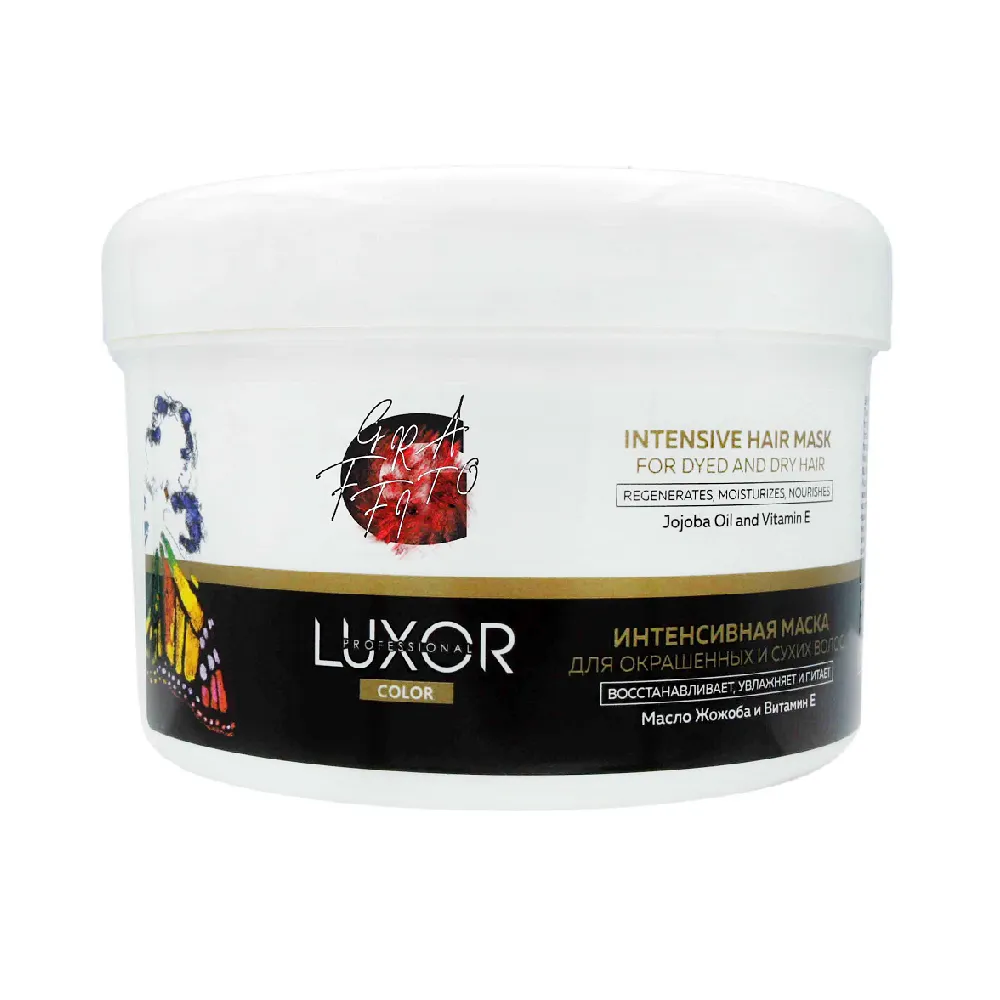 Маска INTENSIVE HAIR MASK призначена для відновлення волосся після процедур фарбування, знебарвлення та перманентної завивки волосся. Олія авокадо, що входить у склад, багата вітамінами групи A, B, D, E, K, PP, мінералами, фітостеролами та вкрай важливими жирними кислотами. Ці активні компоненти заповнюють нестачу поживних речовин, оживляють капілярне волокно від коренів до кінчиків, збільшуючи тим самим природний обсяг волосся. Завдяки винятковому складу комплексу рослинних олій і пантенолу волосся набуває еластичність, м`якість, шовковистість і діамантовий блиск. Унікальний склад маски дозволяє досягти видимого результату після першого застосування. Особливості продукту: Активні компоненти: олія авокадо, пантенол. Застосування: рясно нанести маску на чисте вологе волосся, приділяючи особливу увагу пошкодженим ділянкам, залишити на 10-15 хвилин, змити великою кількістю води. При використанні тепла маска посилює свою дію на волосся.Маска інтенсивна відновлювальна для пофарбованого і сухого волосся INTENSIVE HAIR MASK Color service LUXOR Professional