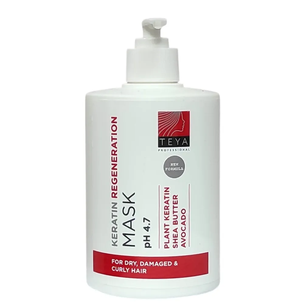 Маска KERATIN REGENERATION - це спеціалізована косметика із оновленою формулою потужними відновлюювальними та зволожувальними властивостями. Вдосконалена формула підходить для всіх типів волосся. Особливо ідеально підходить для сухого, кучерявого або пошкодженого волосся. Завдяки унікальній формулі маска глибоко живить і зміцнює волосся, роблячи його м’яким, гладким і шовковистим. Ідеальна маска для відновлення волосся після фарбування, термовпливу та інших пошкоджень. Активні компоненти: рослинний кератин, олія ши та авокадо. Особливості продукту: Застосування: нанесіть маску на чисте вологе волосся, витримати 5-10 хвилин, змити водою.Маска кератинова регенерація (pH 4.7) для відновлення пошкодженого волосся KERATIN REGENERATION Mask TEYA Professional