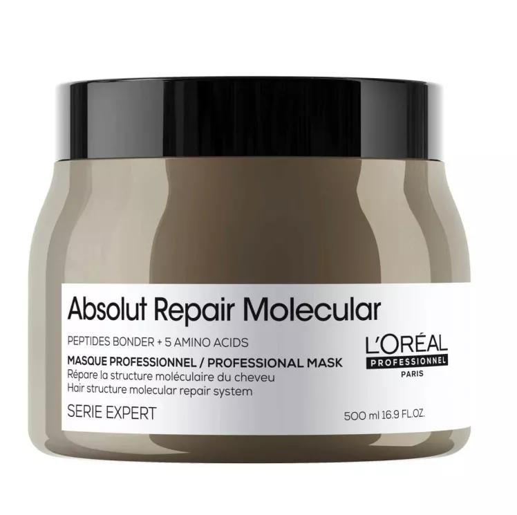 Absolut Repair Molecular Mask — це брендовий засіб, який забезпечує глибоке відновлення та реконструкцію пошкоджених ділянок на молекулярному рівні. Її формула спрямована на вплив зсередини, повертаючи локонам втрачену силу, гладкість та еластичність. Особливості продукту: Маска Absolut Repair Molecular Mask завдяки комплексу з 5 амінокислот та спеціальному компоненту Peptides bonder ефективно допомагає усунути навіть раніше незворотні пошкодження. Вже після першого застосування локони стають помітно міцнішими, більш пружними та повертають свою природну рухливість. Ідеально підходить для сухого, ламкого та пошкодженого волосся, надаючи їм здоровий і неперевершений доглянутий вигляд. Застосування: Нанесіть маску Absolut Repair Molecular рівномірним шаром на вимите шампунем і висушене рушником волосся. Залишіть на 5-10 хвилини. Потім ретельно змийте.Маска концентрована змивна для молекулярного відновлення структури пошкодженого волосся Mask Absolut Repair Molecular Serie Expert L`Oreal Professionnel