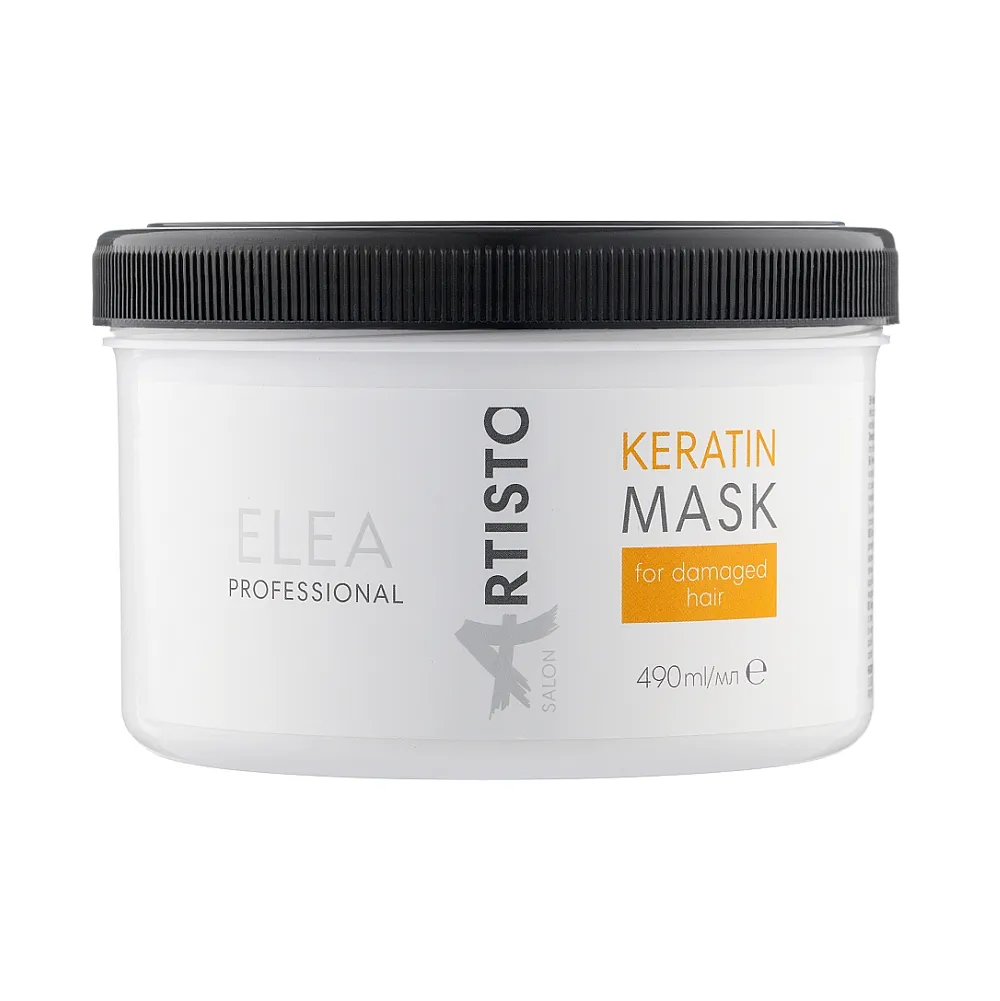 Маска для волосся Keratin Mask з сильною відновлюючою дією з фітокератином з конопель та рисовим протеїном. Забезпечує високий рівень догляду, відновлює природну структуру волосся та усуває пошкодження, спричинені хімічними процедурами. Поєднання цінних фітокомпонентів збагачує і зміцнює волосся від коріння до кінчиків, робить його блискучим і легким при розчісуванні та укладанні. Особливості продукту: Активні компоненти: цетримоніум хлорид,хлорид дистеарилдимонія, фітокератин, D-пантенол. Застосування: масажними рухами нанесіть маску на чисте вологе волосся, через 5-7 хвилин змийте великою кількістю теплої води. Для максимального ефекту необхідно витримати на волоссі 10 хвилин.Маска реструктурувальна для пошкодженого волосся Keratin Mask Salon ARTISTO ELEA Professional