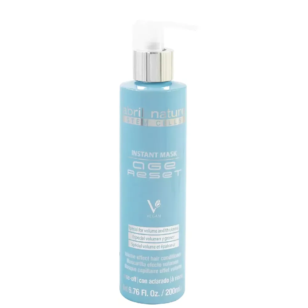 Маска з ефектом ботоксу Instant Mask AGE RESET ущільнює волосся зсередини, зміцнює, надає об`єм і блиск. Додає сили не тільки віковим, а й ослабленим пористим локонам. Розгладжує кутикулу, заповнює внутрішні частини волосяних стрижнів, збільшує товщину локонів та дарує їм розкішний об`єм. Особливості продукту: Активні компоненти: пропіленгліколь, сополімер на основі гідролізованного рослинного білка, олію крамбе і аргана, екстракти дамаської троянди і камелії, яблучні стовбурові клітини, екстракт проростків пшениці. Застосування: маска є другим етапом догляду за віковим волоссям, після застосування шампуню нанести на висушене рушником волосся, залишити на 5-10 хвилин та змити.Маска з ефектом ботоксу для надання об`єму тонкому волоссю Instant Mask AGE RESET Abril et Nature