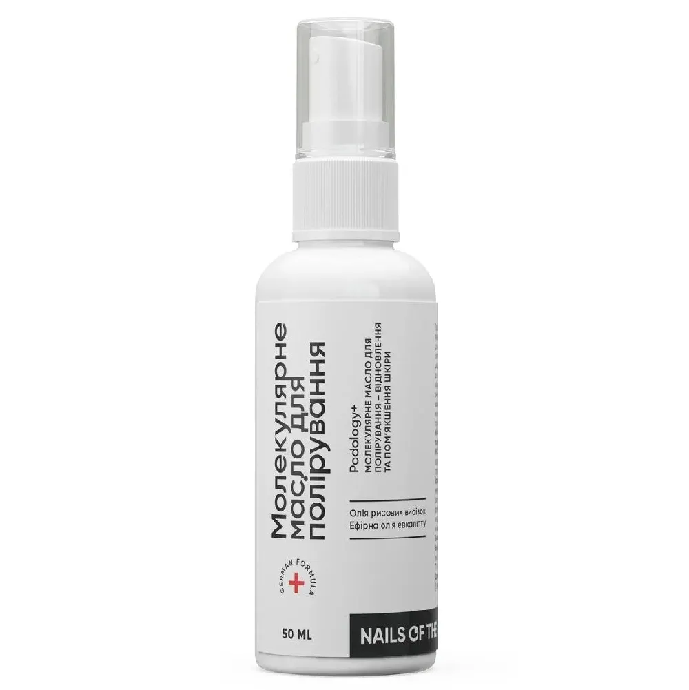Молекулярна олія для полірування — професійна двофазна молекулярна олія, розроблена німецьким технологом, для догляду за шкірою, Основні властивості: Молекулярна олія для полірування шкіри Podology+ NAILSOFTHEDAY Молекулярна олія для полірування NOTD Podology+ забезпечує красу та здоров’я вашої шкіри. Технологія застосування: Молекулярна олія для полірування шкіри Podology+ NAILSOFTHEDAY Молекулярна олія для полірування шкіри Podology+ NAILSOFTHEDAY