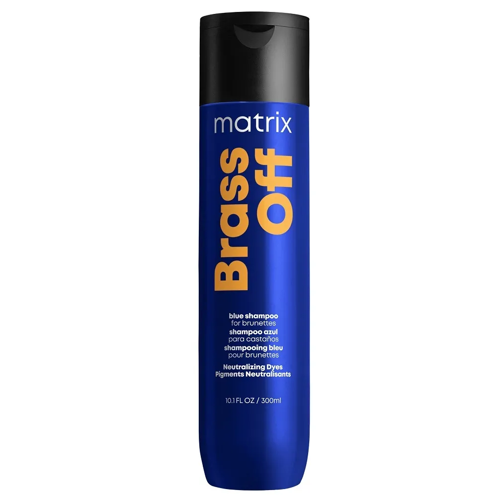 MATRIX Total Results Brass Off Shampoo Шампунь для нейтралізації жовтизни волосся Спеціальний шампунь нейтралізує небажані теплі відтінки фарбованого та освітленого волосся ( 6-8 вівень тону). Нанесіть невелику кількість шампуню на вологе волосся , спіньте. Витримайте 2-5 хвилин для дії пігменту.