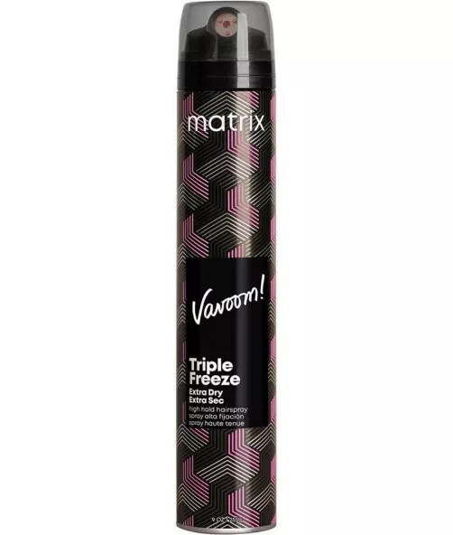 Vavoom Triple Freeze Extra Dry Spray Сухий спрей екстрасильної фіксації з потрійним дифузором Сухий спрей для екстрафіксації волосся гарантує тривалий блиск і контроль над зачіскою протягом дня. Добре струсіть. Розпорошіть на сухе волосся з відстані 35 см.