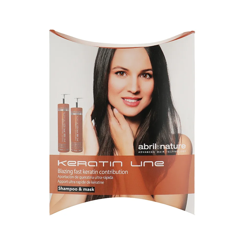 Шампунь відновлювальний з кератином для пошкодженного волосся, 30 мл Bain Shampoo KERATIN Abril et Nature; Маска відновлювальна з кератином для пошкодженного волосся, 30 мл Instant Mask KERATIN Abril et Nature. Повернути локонам красу та здоровий вигляд допоможе набір KERATIN Abril et Nature. Формула продуктів насичена ефірними оліями та кератином, що сприяє відновленню структури волосся зсередини. Активні інгредієнти м`яко очищують та інтенсивно зволожують пасма, сприяючи поверненню природного блиску та сяйва. Особливості продукту: Застосування:Міні-набір відновлювальний з кератином для пошкодженного волосся KERATIN Abril et Nature