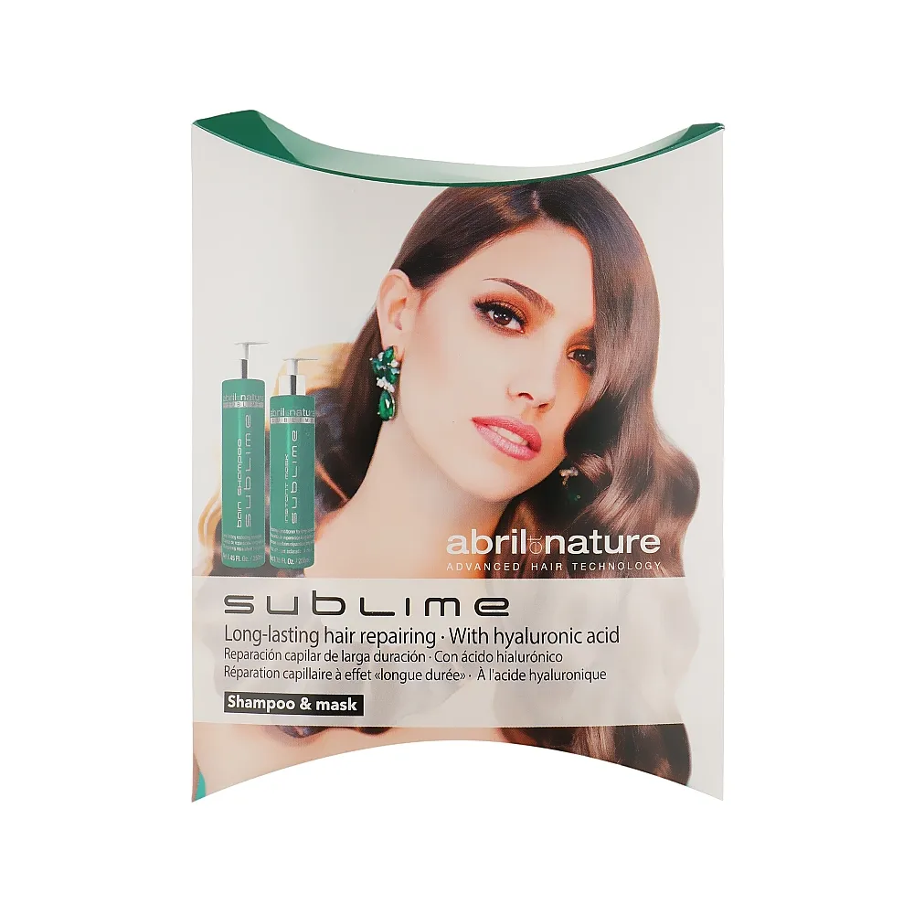 Склад набору: Шампунь зволожувальний для пошкодженного та густого волосся з гіалуроновою кислотою, 30 мл Bain Shampoo SUBLIME Abril et Nature; Маска зволожувальна для пошкодженного та густого волосся з гіалуроновою кислотою, 30 мл Instant Mask SUBLIME Abril et Nature. Набір SUBLIME це засоби для зволоження та відновлення волосся як на поверхні, так і всередині з тривалим ефектом. Спеціально розроблений для пошкодженого агресивними процедурами укладання волосся. Особливості продукту: Застосування:Міні-набір зволожувальний для пошкодженного та густого волосся SUBLIME Abril et Nature