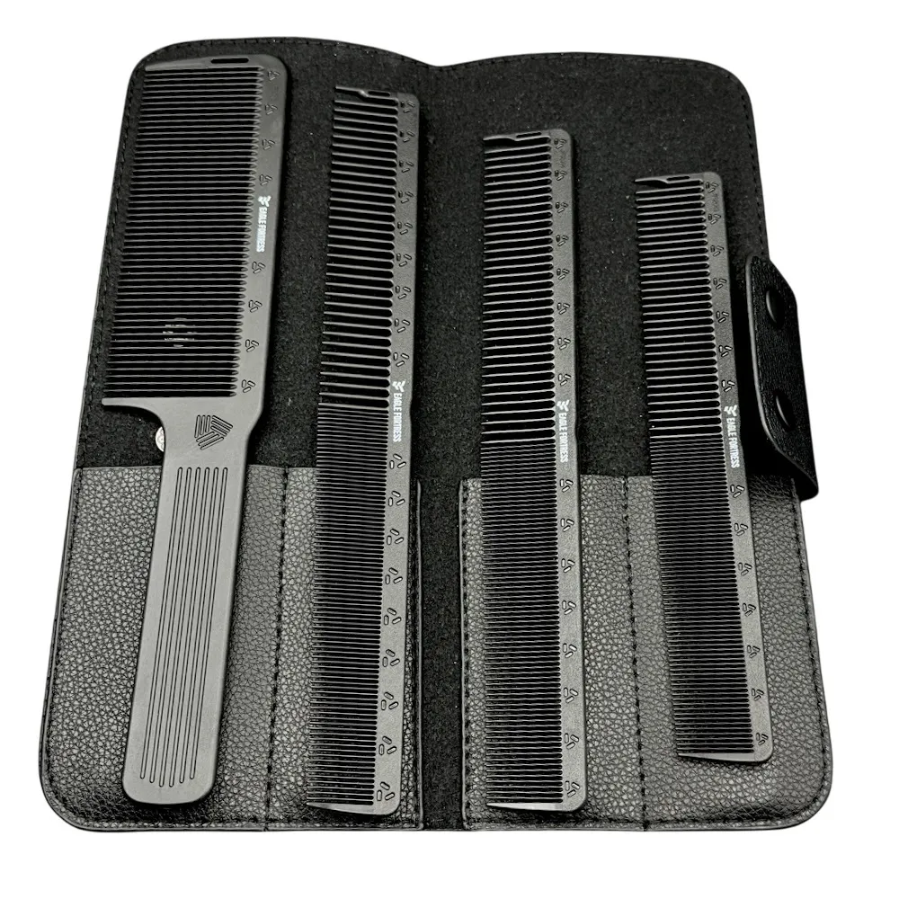 Професійний набір карбонових гребінців Eagle Fortress JF012 PROLine створений спеціально для барберів та перукарів, яким потрібні надійні, термостійкі та довговічні інструменти. До комплекту входить 4 різні моделі гребінців, які закривають основні потреби у стрижці, фейдах, окантовці та укладанні. Зручний чохол дозволяє компактно зберігати набір і брати його з собою на виїзди. Особливості продукту: Набір карбонових гребінців для барберів "Eagle Fortress" (4 шт + чохол) JF012 PROLineНабір карбонових гребінців для барберів "Eagle Fortress" (4 шт + чохол) JF012 PROLine
