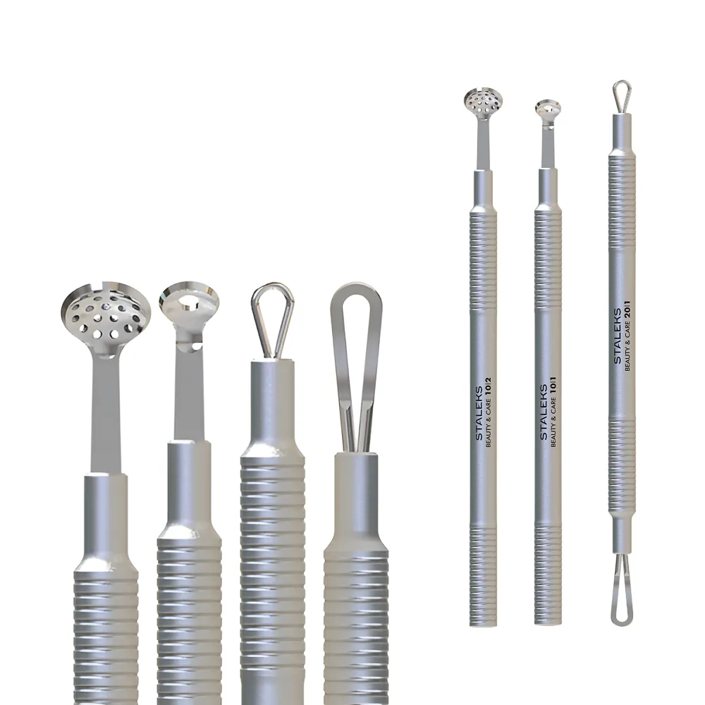 Набір "Чиста шкіра" розрахований на використання у домашніх умовах. У набір входить три інструменти: Інструмент набору виготовлений із якісної медичної сталі, має відполіровані краї для зниження ризику травмування шкіри та має спеціальні насічки на ручках для зручності роботи. Домашня чистка обличчя з таким набором буде легкою та атравматичною. Особливості продукту: Набір косметологічний “Чиста шкіра” BEAUTY & CARE 30 STALEKSНабір косметологічний “Чиста шкіра” BEAUTY & CARE 30 STALEKS