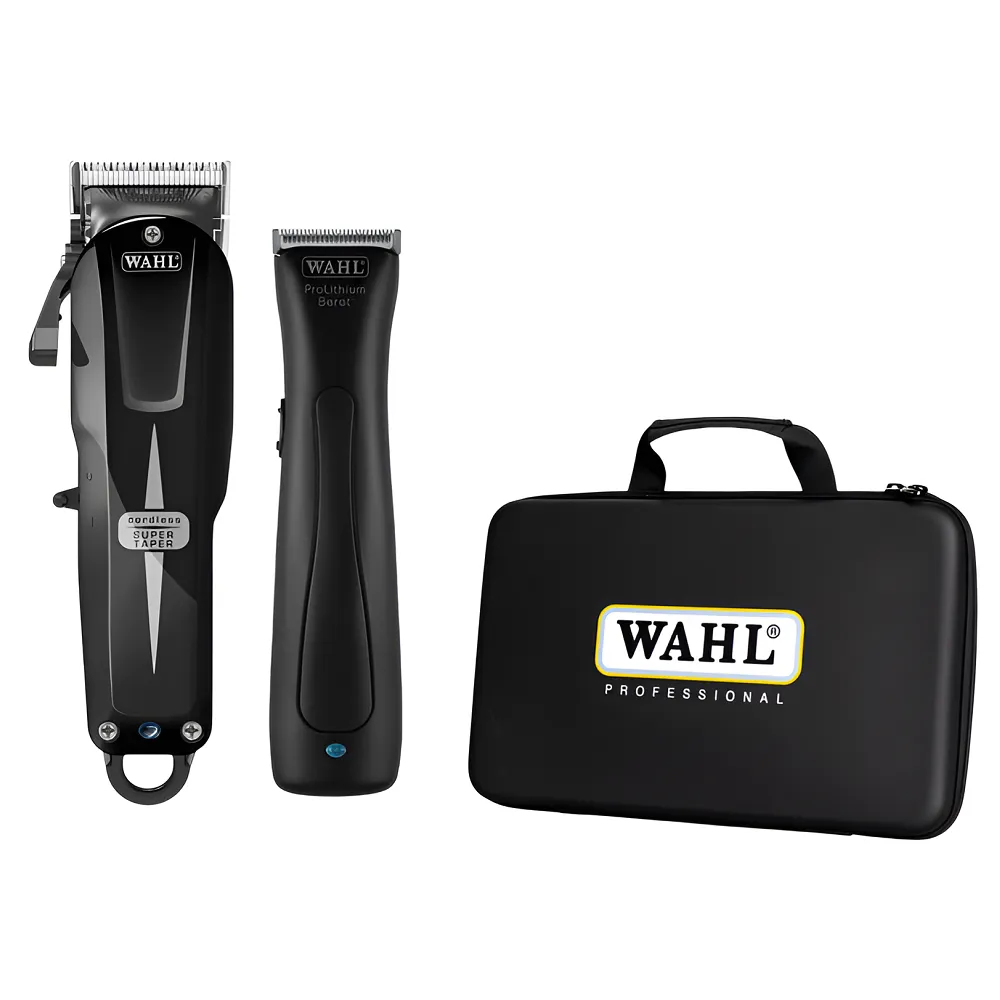 Набір бездротових перукарських машинок Wahl Professional Cordless Combo Limited Edition 08592-017 рекомендований професійним перукарям або барберам для стрижки та окантовки волосся. Комплект машинок поставляється обмеженою серією в пластиковому кейсі на блискавці з ручкою. Важіль на лівій стороні машинки змінює висоту зрізу, допомагаючи змінювати довжину і форму стрижки або виконувати плавні переходи. Ніж тримера з частими дрібними зубцями створює точну окантувальну лінію при завершенні стрижки, оформленні вусів або бороди. Обидві машинки можуть працювати від літій-іонних акумуляторів або від мережі: Інструменти та вхідні в набір аксесуари постачаються в жорсткому пластиковому футлярі. Кейс спрощує зберігання та перевезення набору і одночасно захищає машинки від пошкоджень. Основні особливості машини Super Taper Cordless Black: Набір машинок для стрижки в кейсі Cordless COMBO Super Taper Cordless Black + Beret Stealth 08592-017 WAHL Головні особливості тримера Beret Stealth: Набір машинок для стрижки в кейсі Cordless COMBO Super Taper Cordless Black + Beret Stealth 08592-017 WAHL В комплекті: Набір машинок для стрижки в кейсі Cordless COMBO Super Taper Cordless Black + Beret Stealth 08592-017 WAHL Умови гарантії: Набір машинок для стрижки в кейсі Cordless COMBO Super Taper Cordless Black + Beret Stealth 08592-017 WAHL