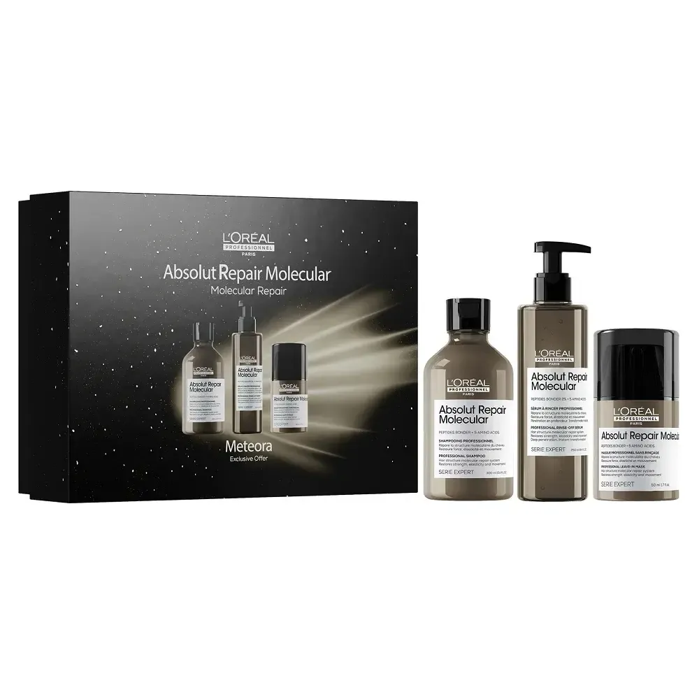 Поверніть своєму волоссю силу та життя з набором Meteora Absolut Repair Molecular L`Oreal Professionnel - інноваційним доглядом, який відновлює волосся на молекулярному рівні. Створений для глибоко пошкодженого волосся, цей комплекс повертає йому еластичність, блиск і природну м’якість уже після першого застосування. Ваше волосся відновлюється зсередини, стає щільним, блискучим і неймовірно м’яким - як після професійного салонного догляду. У наборі: Набір (шампунь 300 мл+сироватка 250 мл+маска 50 мл), Meteora Absolut Repair Molecular L`Oreal Professionnel Особливості шампуня Absolut Repair Molecular: Набір (шампунь 300 мл+сироватка 250 мл+маска 50 мл), Meteora Absolut Repair Molecular L`Oreal Professionnel Особливості сироватки Absolut Repair Molecular: Набір (шампунь 300 мл+сироватка 250 мл+маска 50 мл), Meteora Absolut Repair Molecular L`Oreal Professionnel Особливості маски Absolut Repair Molecular: Набір (шампунь 300 мл+сироватка 250 мл+маска 50 мл), Meteora Absolut Repair Molecular L`Oreal Professionnel Застосування: Набір (шампунь 300 мл+сироватка 250 мл+маска 50 мл), Meteora Absolut Repair Molecular L`Oreal ProfessionnelНабір (шампунь 300 мл+сироватка 250 мл+маска 50 мл), Meteora Absolut Repair Molecular L`Oreal Professionnel