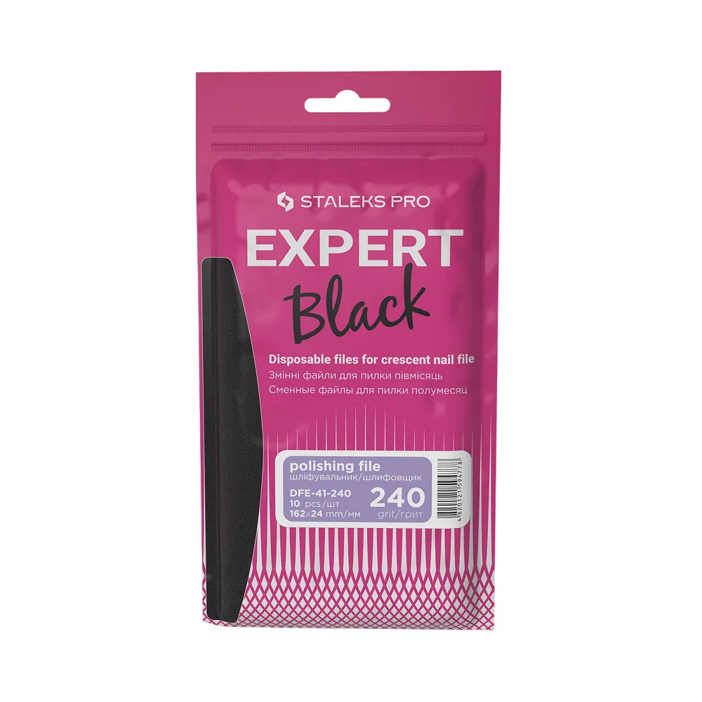 Набори змінних файлів для пилки півмісяць Expert призначені для професійного використання. Працюючи в салоні, дуже важливо дотримуватися гігієнічних норм, а одноразові наклейки, що підлягають заміні після кожного клієнта, — найпростіший і найбезпечніший спосіб запобігти поширенню бактеріальних та вірусних інфекцій. Набір призначений для пилки-основи розміром 16.2 х 2.5 см. Основу можна дезінфікувати з іншими інструментами. Це робить використання одноразових абразивів максимально безпечним для клієнта та майстра. Абразиви вологостійкі, що не скручуються, не розмокають, що забезпечує комфортну роботу в техніці вологого манікюру. Особливості продукту: Набір змінних файлів (10шт) для пилки півмісяць-баф (шліфувальник на пінній основі), 240 грит EXPERT 41 (DFE-41-240) STALEKS PRO Підходять для металевої (MBE-40) та акрилової (ABE-40) основ.Набір змінних файлів (10шт) для пилки півмісяць-баф (шліфувальник на пінній основі), 240 грит EXPERT 41 (DFE-41-240) STALEKS PRO