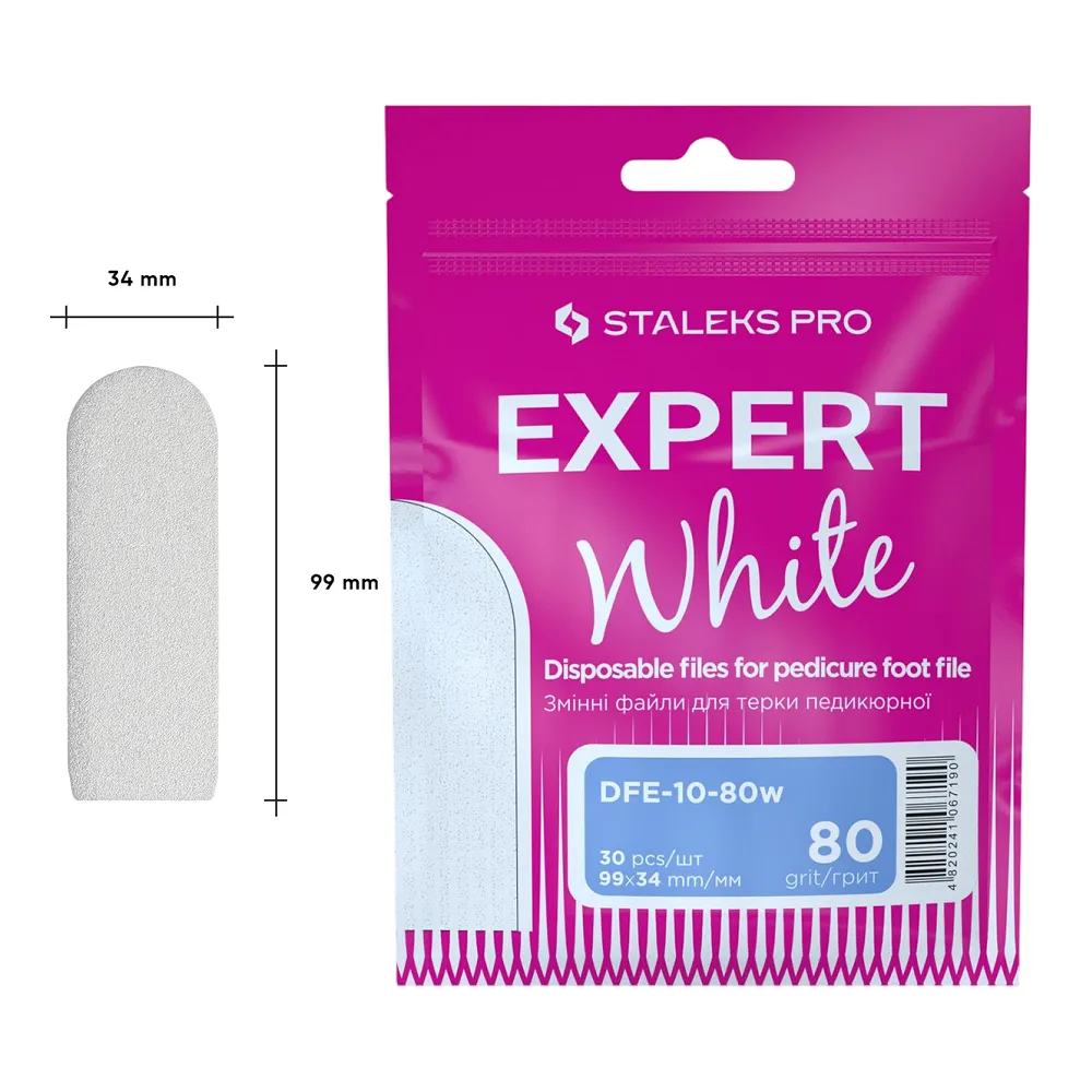 Набір змінних файлів (30 шт) БІЛІ для педикюрної терки 80 грит EXPERT 10 (DFE-10-80w) STALEKS PRO