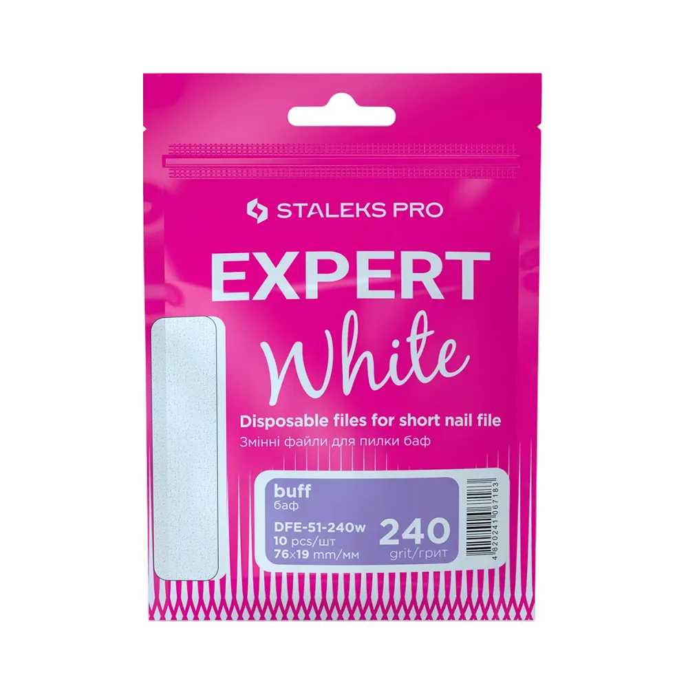 Пилочка - важливий інструмент для майстра манікюру та педикюру. За стандартами сучасного вона повинна бути не тільки продуктивною, а й гігієнічною. Одноразовий абразив використовують для кожного клієнта новий, а сталеву основу-пилку — дезінфікують та стерилізують. Білі змінні файли для прямої короткої пилки мають міцну водостійку клейову основу. Їхній розмір точно відповідає параметрам пилки. Файли зручні у використанні, не рвуться і не пошкоджуються під час роботи. Особливості продукту: Набір змінних файлів БІЛІ на м’якій основі (10шт) для пилки короткої (шліфувальник на пінній основі) 240 грит EXPERT 51 (DFE-51-240w SOFT) STALEKS PROНабір змінних файлів БІЛІ на м’якій основі (10шт) для пилки короткої (шліфувальник на пінній основі) 240 грит EXPERT 51 (DFE-51-240w SOFT) STALEKS PRO