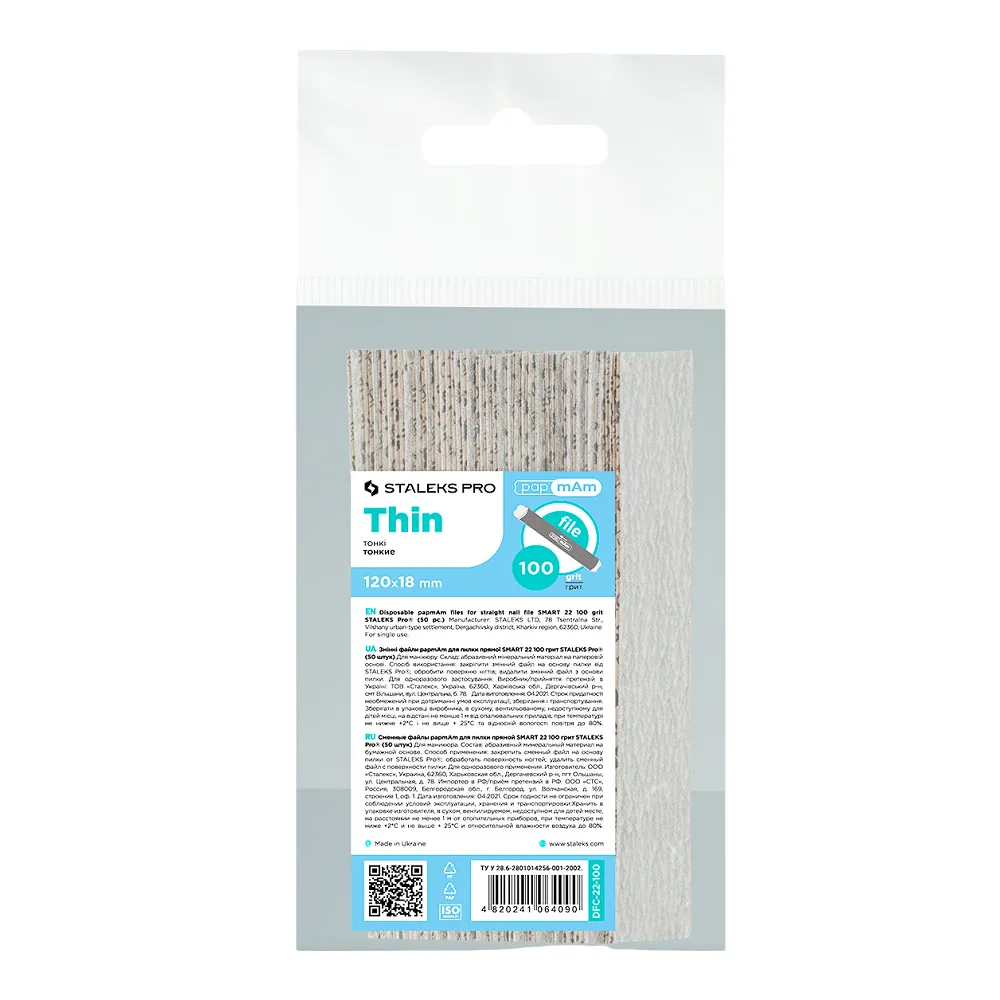 PapmAm SMART 22 - практичні змінні файли для прямої пилки з абразивністю 100 грит. У наборі 50 одноразових накладок, що одягаються на основу для кожного нового клієнта. Змінні файл-чохли це турбота про здоров`я клієнта, забезпечення гігієнічності та безпеки процедури. Особливості продукту: Набір змінних файлів papmAm (50шт) для пилки прямої 100 грит SMART 22 (DFC-22-100) STALEKS PRO Для роботи з файлами рекомендовані основи WBE-20, SPBE-20 і MBE-20.Набір змінних файлів papmAm (50шт) для пилки прямої 100 грит SMART 22 (DFC-22-100) STALEKS PRO