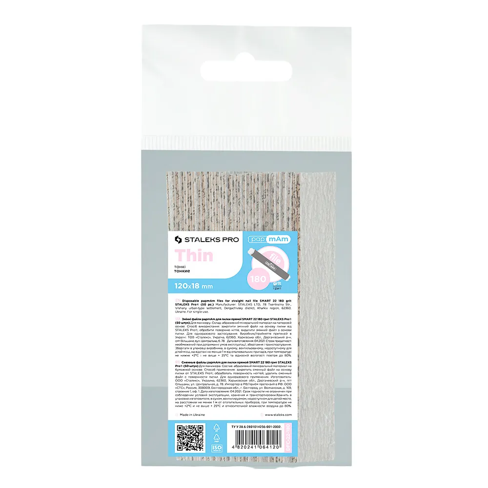 PapmAm SMART 22 - практичні змінні файли для прямої пилки з абразивністю 180 грит. У наборі 50 одноразових накладок, що одягаються на основу для кожного нового клієнта. Змінні файл-чохли це турбота про здоров`я клієнта, забезпечення гігієнічності та безпеки процедури. Особливості продукту: Набір змінних файлів papmAm (50шт) для пилки прямої 180 грит SMART 22 (DFC-22-180) STALEKS PRO Для роботи з файлами рекомендовані основи WBE-20, SPBE-20 і MBE-20.Набір змінних файлів papmAm (50шт) для пилки прямої 180 грит SMART 22 (DFC-22-180) STALEKS PRO