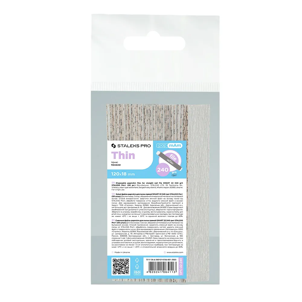 PapmAm SMART 22 - практичні змінні файли для прямої пилки з абразивністю 240 грит. У наборі 50 одноразових накладок, що одягаються на основу для кожного нового клієнта. Змінні файл-чохли це турбота про здоров`я клієнта, забезпечення гігієнічності та безпеки процедури. Особливості продукту: Набір змінних файлів papmAm (50шт) для пилки прямої 240 грит SMART 22 (DFC-22-240) STALEKS PRO Для роботи з файлами рекомендовані основи WBE-20, SPBE-20 і MBE-20.Набір змінних файлів papmAm (50шт) для пилки прямої 240 грит SMART 22 (DFC-22-240) STALEKS PRO