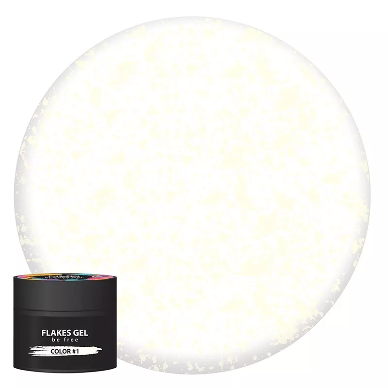 NUB Flakes Gel / Гель для дизайну з декоративними пластівцями / 5 г / # 01 - білий - нейл-матеріал, розроблений для створення різноманітних манікюрних дизайнів, як простих, так і складних технічно Виглядає як прозорий гель з додаванням кольорових пластівців різного розміру і формату. При нанесенні на ніготь пластівці можна концентрувати біля основи, рівномірно розтягувати по всій поверхні або декорувати певну частину нігтьової пластини. Це найпростіші варіанти роботи з таким гелем. Завдяки високій густині він не тече і підходить для об`ємного дизайну. Пластівці не мають блиску, тому добре виглядають на контрастних тонах ТЕХНОЛОГІЯ ВИКОРИСТАННЯ: 1. Виконуємо манікюр