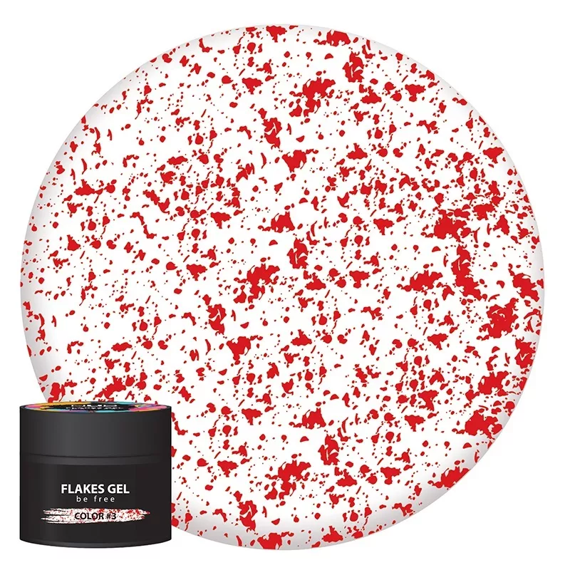 NUB Flakes Gel / Гель для дизайну з декоративними пластівцями / 5 г / # 03 - червоний - нейл-матеріал, розроблений для створення різноманітних манікюрних дизайнів, як простих, так і складних технічно Виглядає як прозорий гель з додаванням кольорових пластівців різного розміру і формату. При нанесенні на ніготь пластівці можна концентрувати біля основи, рівномірно розтягувати по всій поверхні або декорувати певну частину нігтьової пластини. Це найпростіші варіанти роботи з таким гелем. Завдяки високій густині він не тече і підходить для об`ємного дизайну. Пластівці не мають блиску, тому добре виглядають на контрастних тонах ТЕХНОЛОГІЯ ВИКОРИСТАННЯ: 1. Виконуємо манікюр